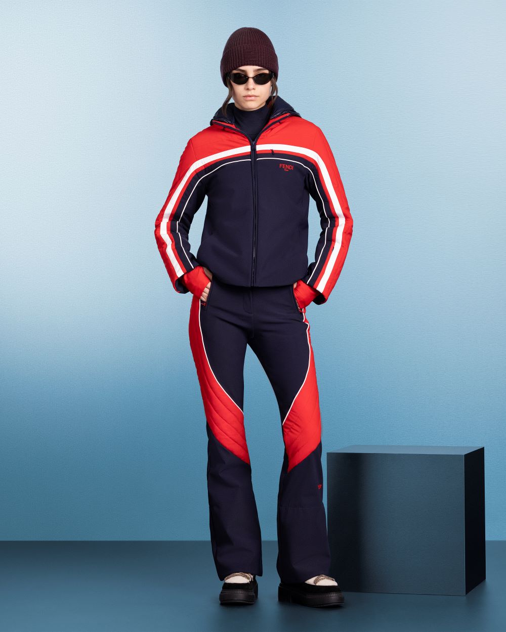 تجسّد مجموعة فندي لأزياء التزلج 2025، نمط حياة المنتجعات الشتوية النخبوية. وتجمع بين التأثيرات الرياضية واللمسات الساحرة.
