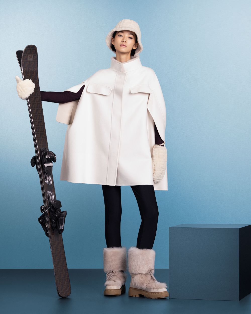 تعكس المجموعة من خلال تشكيلة من الملابس والأكسسوارات والأحذية، عالم النهار والليل، المدينة والجبال، روما والدولوميت، لتشكل مجموعة شتوية متطورة للغاية. واعتمدت فندي الألوان الترابية الهادئة مع التركيز على الأبيض الذي يحاكي بياض الثلج الناصع على المنحدرات. وتزدان السترات بطبعة فندي الشهيرة، لتضفي مستويات جديدة من الأناقة. هذا إلى جانب مجموعة من الأحذية من الصوف والفراء، والقفازات والأوشحة الملونة والنظارات الشمسية الواقية.