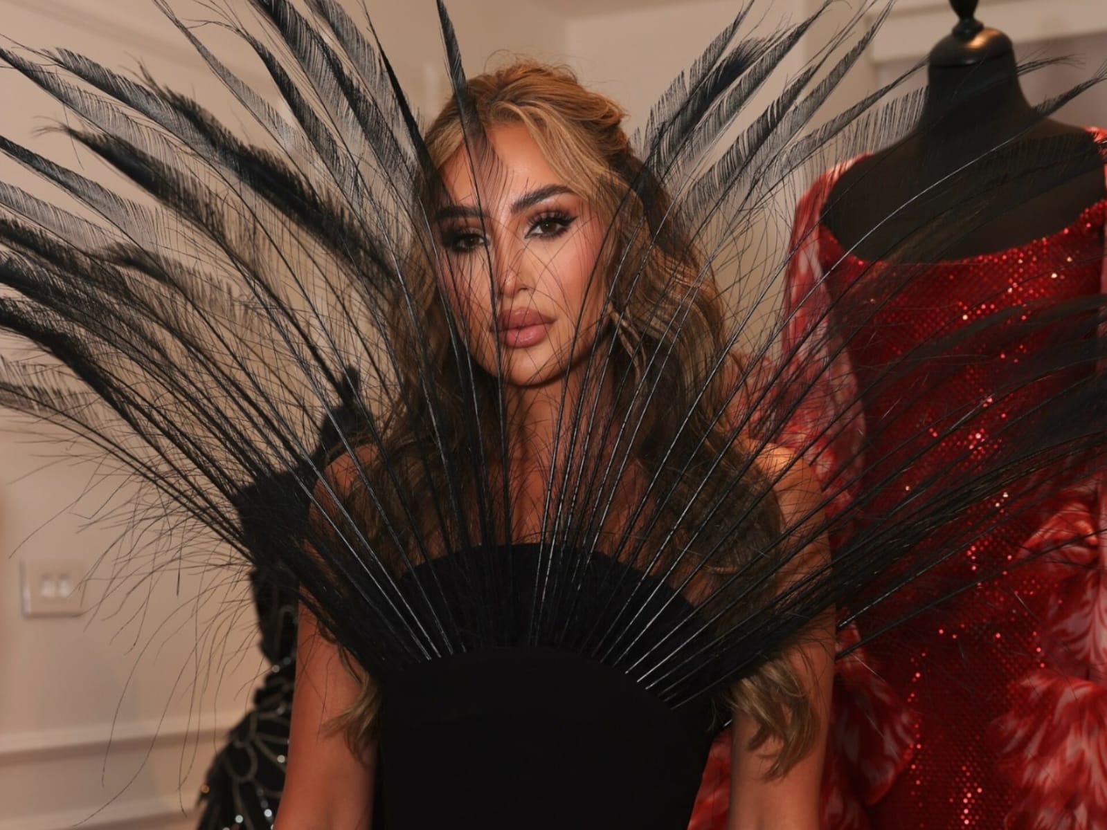 نشرت الفنانة اللبنانيّة مايا دياب منذ عدّة ساعات أحدث إطلالاتها الفريدة على حسابها الرسمي على إنستغرام، حيث ظهرت بتصميمٍ غير مألوف تألّف من فستان أسود قصير وضيّق، جاء مطرّزاً في الجزء العلوي بمجموعة من الريش الطويل والمتطاير من اللون عينه، لتبدو وكأنها غارقة في الريش الذي وصل طوله أعلى من رأسها. وقد حملت إطلالتها توقيع مصممها المفضل جان لويس صبجي.