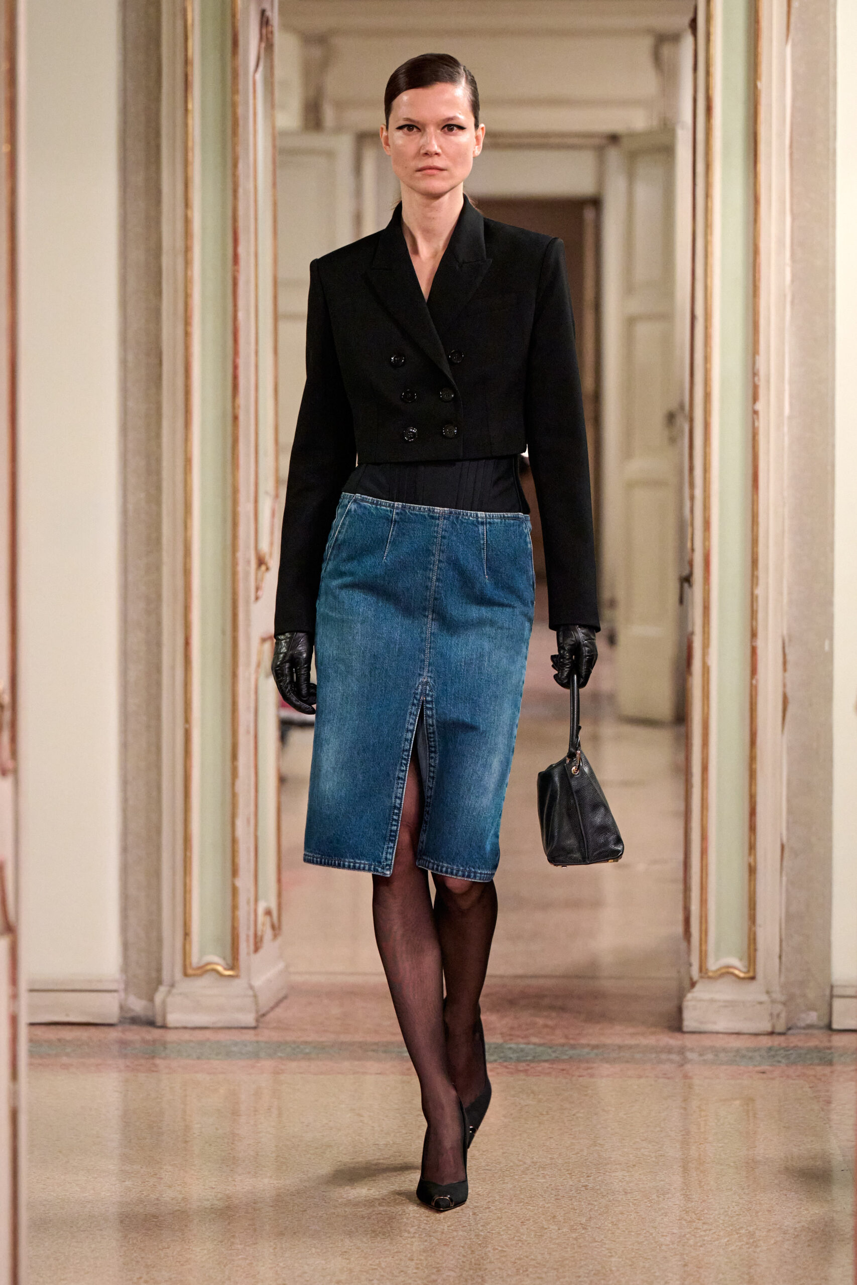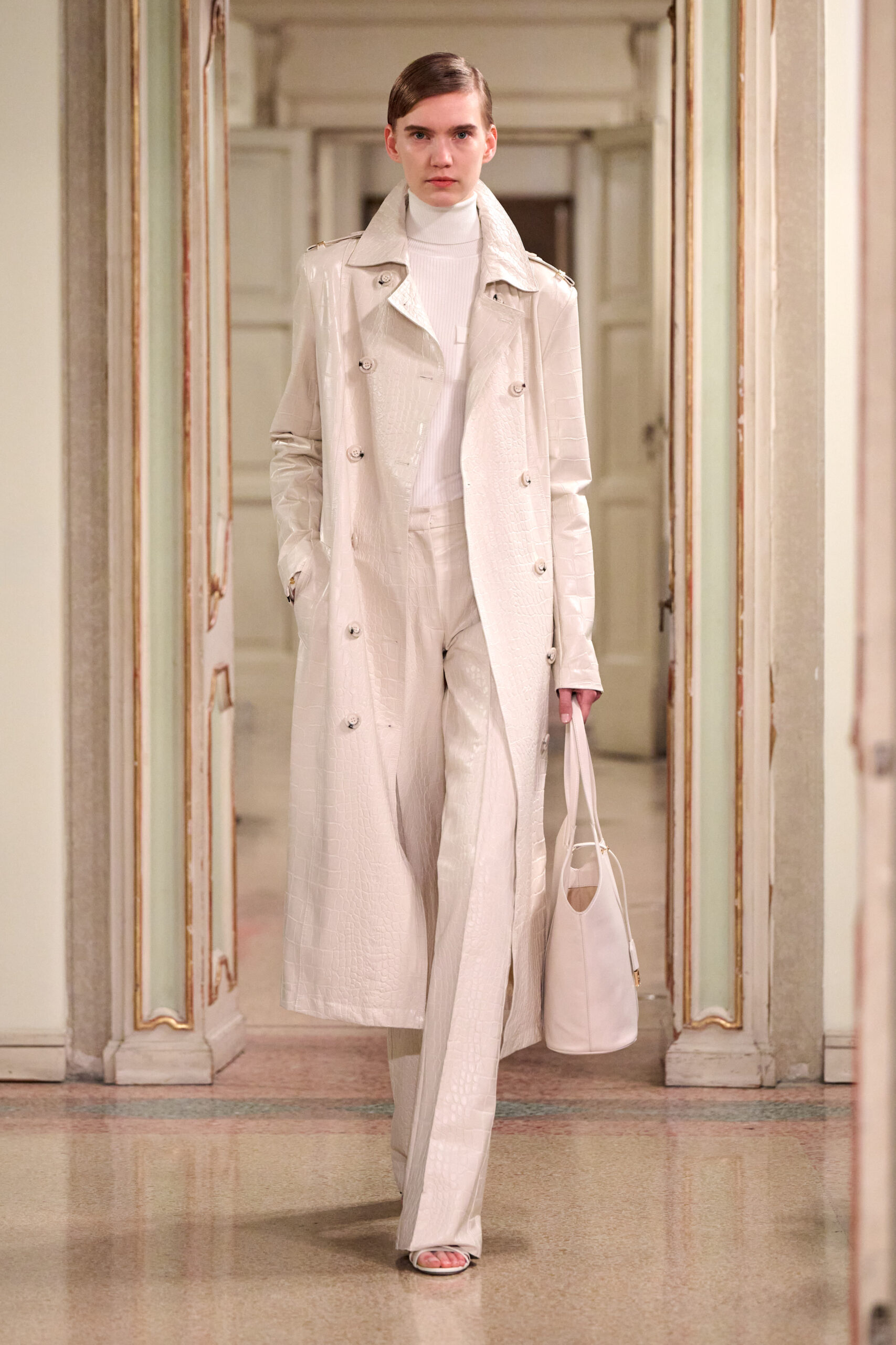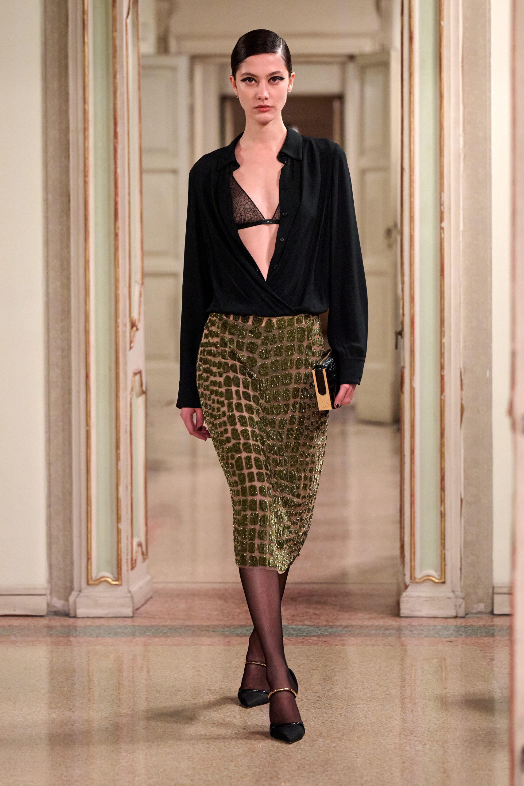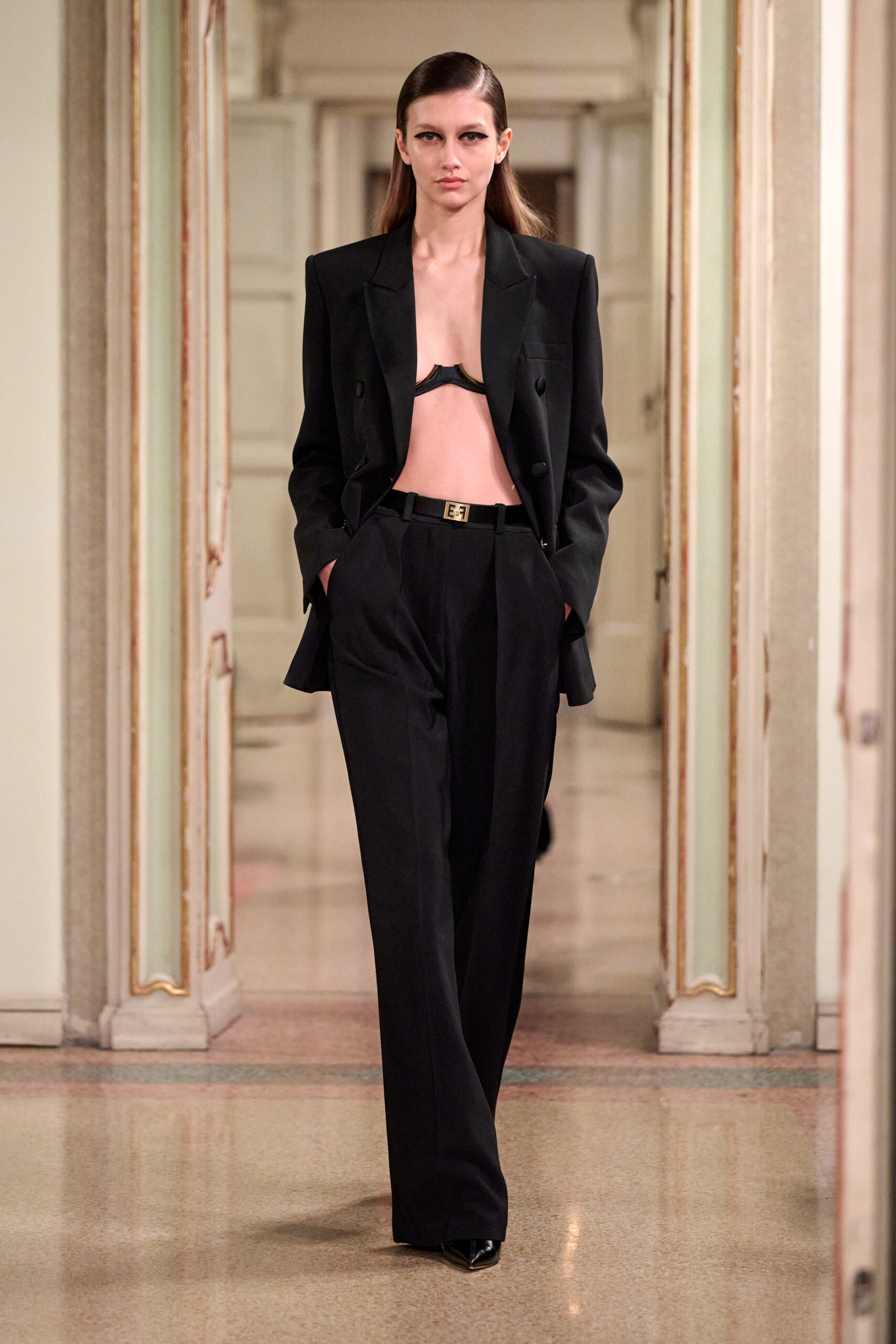 من خلال إعادة تصور البساطة الأنيقة لذكريات التسعينيات وفق رؤية جريئة، تستكشف المديرة الإبداعية لعبتها المميزة على الأضداد، وتستحضر توترًا خفيًا بين الحسية المنضبطة والواضحة للنساء اللواتي يرتدين ملابس لأنفسهن، ويعرفن غريزيًا ما يمنحهن القوة. تم نحت الصور الظلية الحادة على الجسم بدقة، مع التأكيد على الكتفين وخط الخصر، في حين يخلق تقابل القوام والأقمشة، اللامعة والنحتية أو غير اللامعة والمثيرة، تفاعلًا جذابًا.