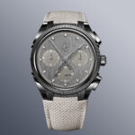 ويأتي الميناء باللون الأزرق المعدني ليعكس هذه العلاقة بين الحركة والتأمّل. فهو مستوحى من لون السماء، يهدّئ من حيوية الكرونوغراف، ويدعو إلى التوقّف والتأمّل في الجوهر. أما اللون، الذي يتغيّر مع الضوء، فيتناغم مع نقش Grain d’Orge guilloché، ليضفي على الساعة عمقاً بصرياً ويُبرز ملمساً متغيّراً، في توازن مثالي بين السيطرة على الزمن والإحساس بجماله.