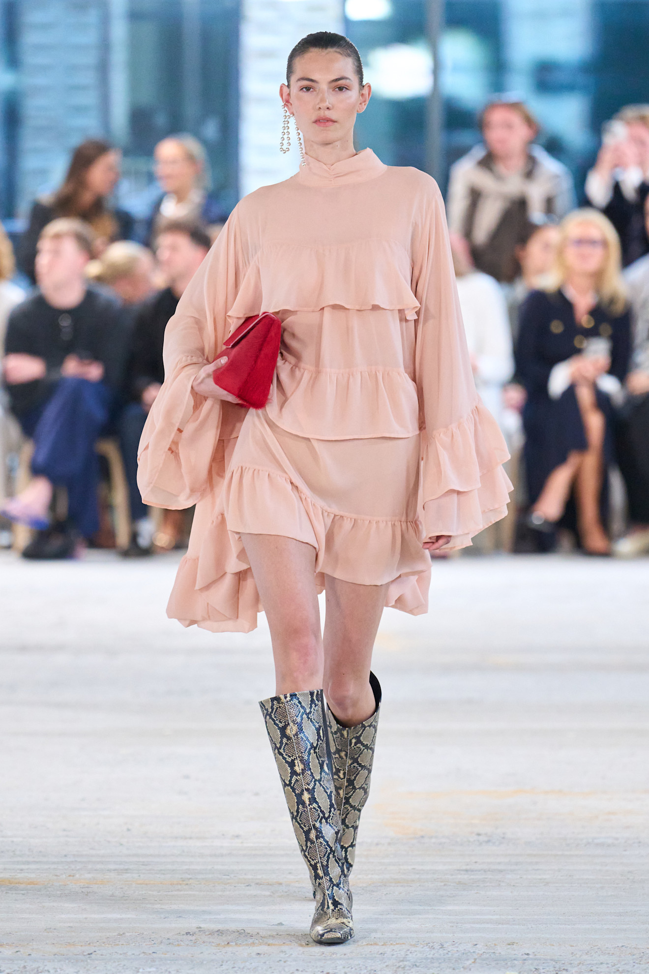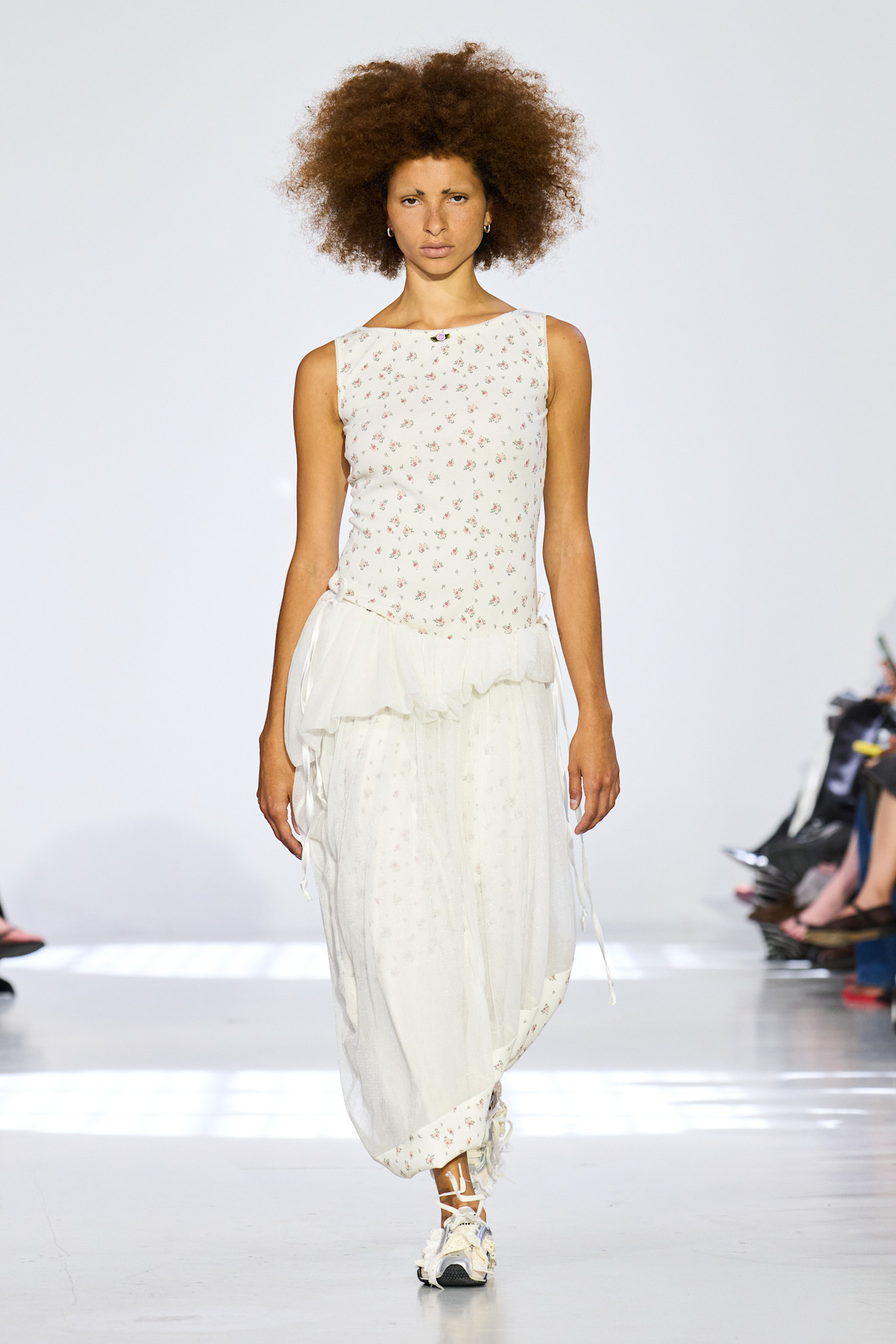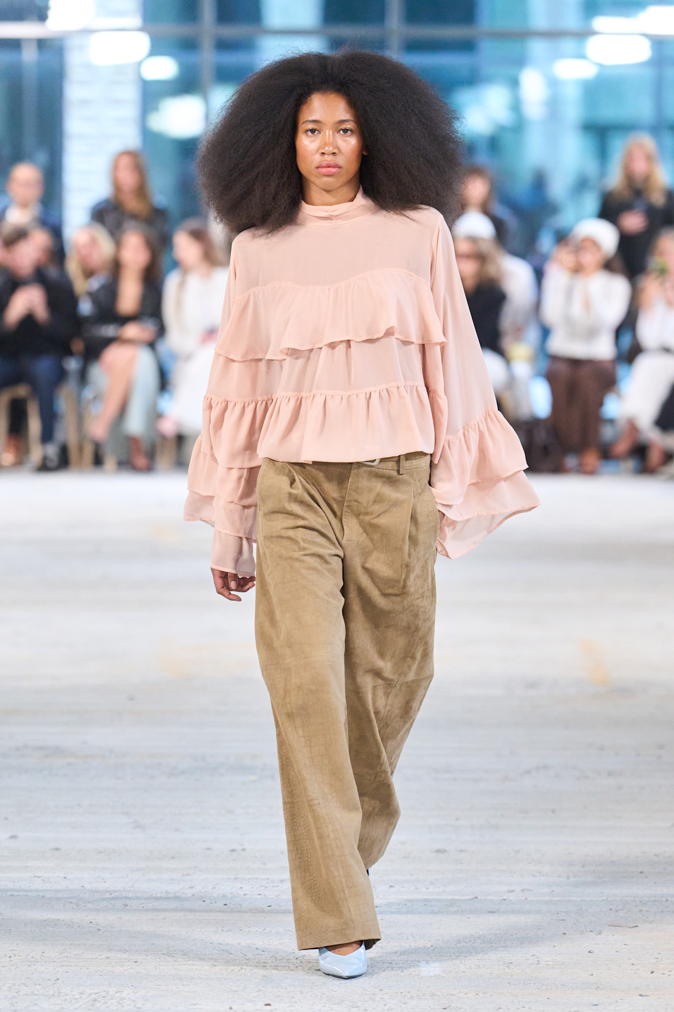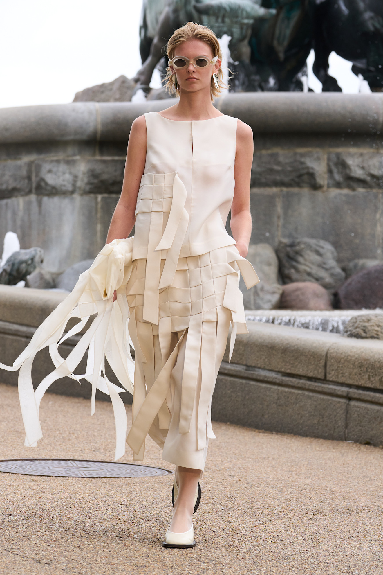 اعتمدت العديد من العروض مثل Gestuz و Anne Sophie MadsenوBonnetje، على الأقمشة الشفافة، التول، والشيفون، ما أضفى على الإطلالات طابعًا رقيقًا وعائمًا، يُجسّد الروح الحالمة لصيف إسكندنافي هادئ.