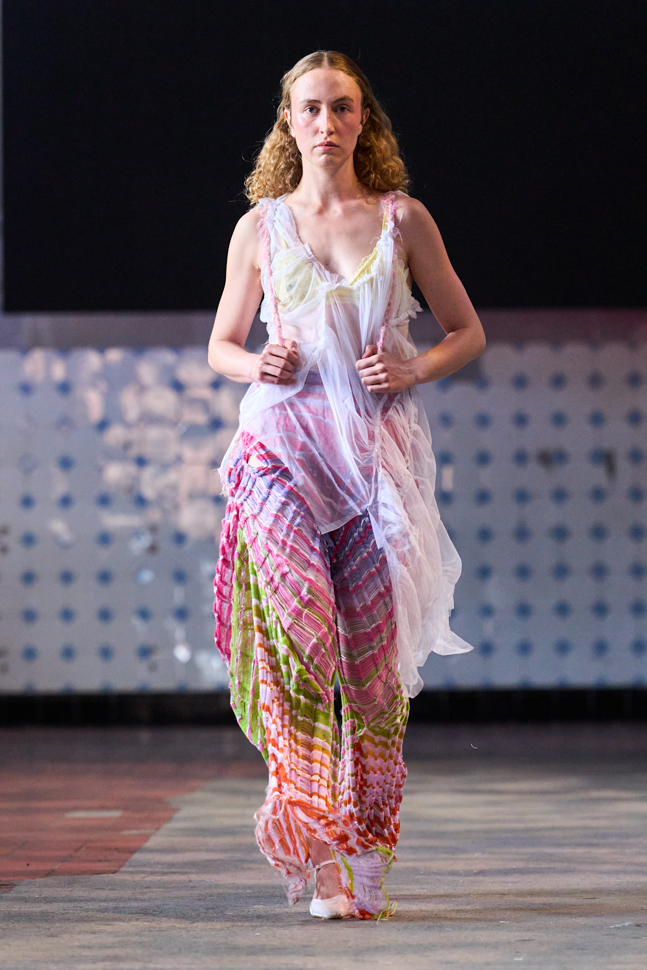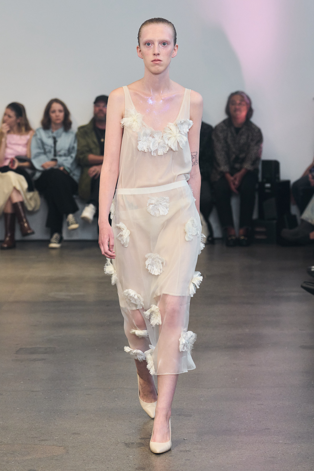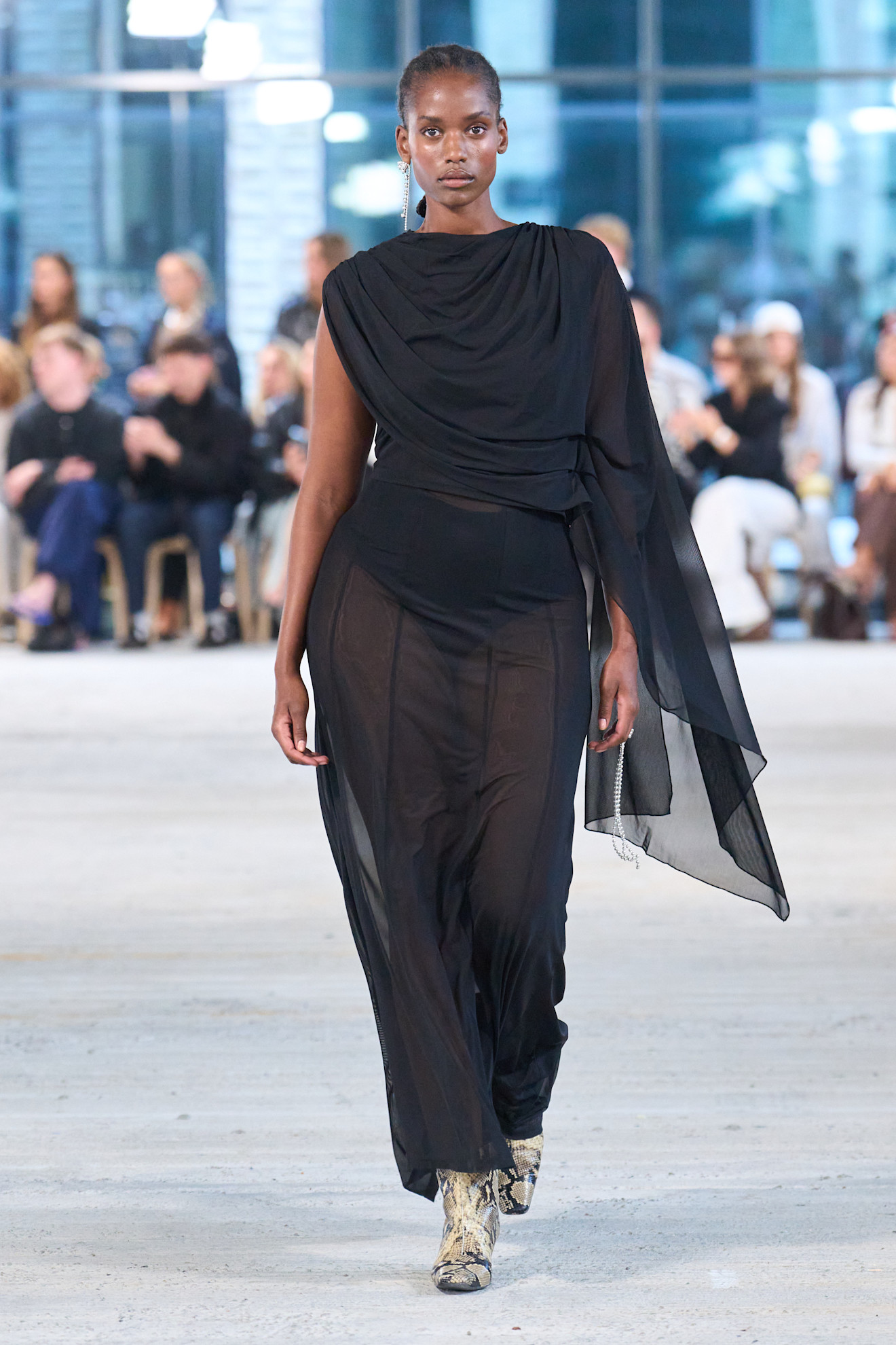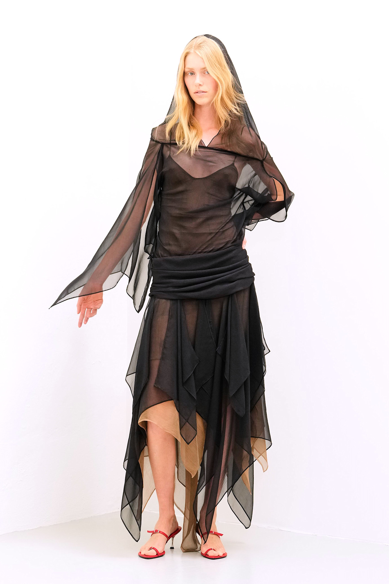 اعتمدت العديد من العروض مثل Gestuz و Anne Sophie MadsenوBonnetje، على الأقمشة الشفافة، التول، والشيفون، ما أضفى على الإطلالات طابعًا رقيقًا وعائمًا، يُجسّد الروح الحالمة لصيف إسكندنافي هادئ.