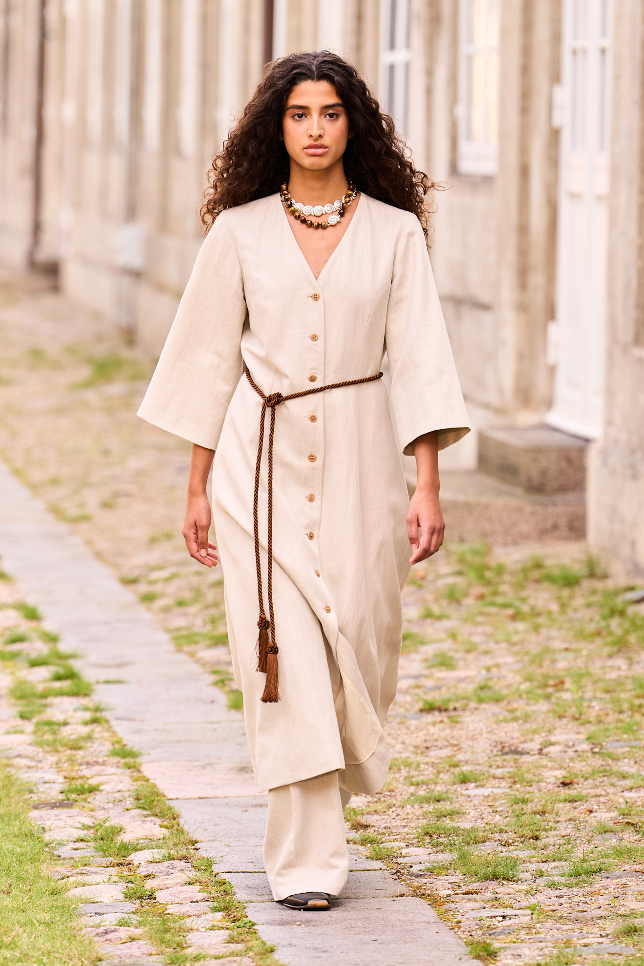رغم بروز التنورة القصيرة كرمز للجرأة الشبابية، احتفظت الفساتين الطويلة بمكانة راسخة في مشهد ربيع وصيف 2026، لا سيما في عروض Bonnetjeو Herskind ، حيث جاءت بقصات فضفاضة، أطوال تتمايل مع الهواء، وأقمشة خفيفة، لتجسد الأنوثة الحالمة المستوحاة من الطبيعة. بعض الفساتين بدت وكأنها امتداد لحركة الجسم، بألوان باهتة تذكّر بضوء الفجر، في حين جاءت أخرى بتفاصيل دقيقة كالدانتيل المطرّز يدويًا أو أطراف غير متماثلة، تمنحها طابعًا شعريًا معاصرًا.