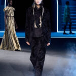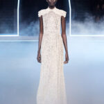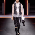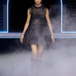 تتناقض الشفافية التي تضفيها القمصان، والتي ترمز إلى الخفة، مع اللباد الأسود غير اللامع للمعاطف ذات البنية المفرطة التي تتبع منحنيات الجسم. الأكتاف مستديرة لتشكيل الصورة الظلية، بينما يتم دمج السترات الرجالية مع صديريات. عاد المعطف الطويل. تمت إضافة ياقات الدانتيل. لامع/غير لامع، أسود/أبيض. القطع العملية، مثل معاطف المطر، هي جزء من المجموعة وتضيء الحياة اليومية التي تعيدنا إلى قلب تاريخنا. تحتفي ديور بالأنوثة التي تتخيل مستقبلًا محتملًا من خلال مزج استحضارات الماضي التي أصبحت أقرب إلى خزانة الملابس المعاصرة.