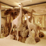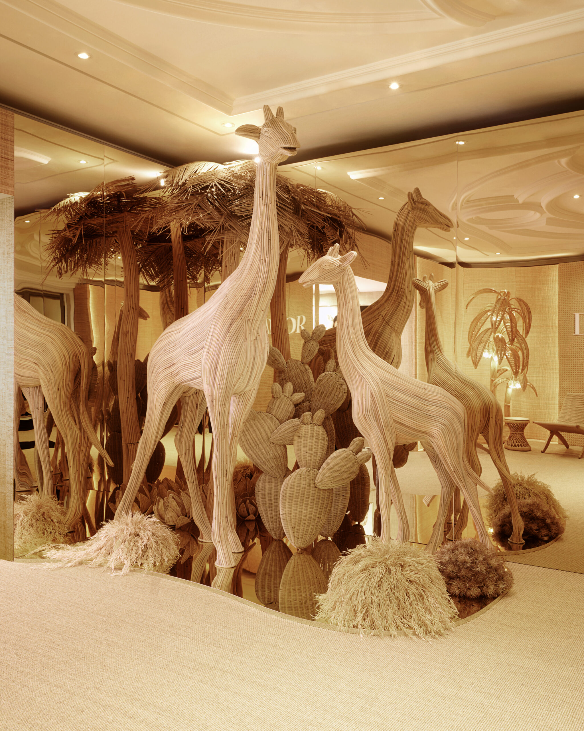هذا الموسم، ترحب ديور بضيوفها بديكور مستوحى من مجموعة ديوريفيرا. بمجرد دخولهم قاعة الاستقبال، ينغمس ضيوف الدار في عالم ريفييرا ساحر ومدهش حقًا. أعيد استخدام مواد طبيعية مثل السيزال والروطان في منسوجات ديور الشهيرة، لأغطية الجدران التي تُحيط ببيئة طبيعية خلاّبة من النباتات الوارفة والصبار وأشجار النخيل المصنوعة من الخوص. كما صُنعت نماذج لأفيال وزرافات من هذه الألياف المنسوجة. تُضفي درجات اللون الرملي والبيج والكاكي لمسة مميّزة على المكان، مُرصّعة بلمسات ديور المميّزة، مثل قماش توال دو جوي الأزرق الداكن، المُستخدم في العناصر الزخرفية وعلى الشرفة المُطلة على البحر.
