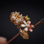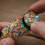 كل تفاصيل هذه التحفة الفنية – من آلية الفتح، إلى نحت الزهور والحشرات والحيوانات الصغيرة، وصولاً إلى تثبيت الأحجار على الجانبين – تعكس براعة الحرفيين ودقة التنفيذ. وقد منح اللكر المميّز بتوقيع دو كاستيلان هذه الحديقة المصغّرة ألوانًا نابضة بالحياة وتدرّجات ساحرة بين المواد الشفافة وتلك التي تحجب الرؤية.