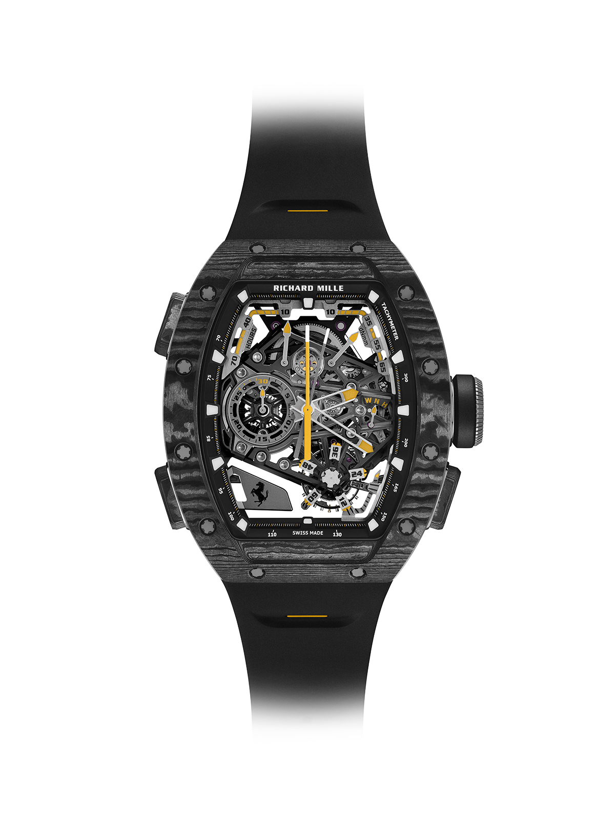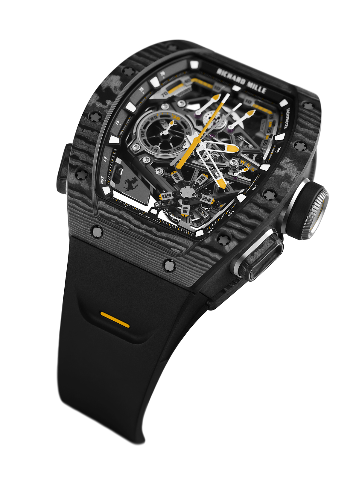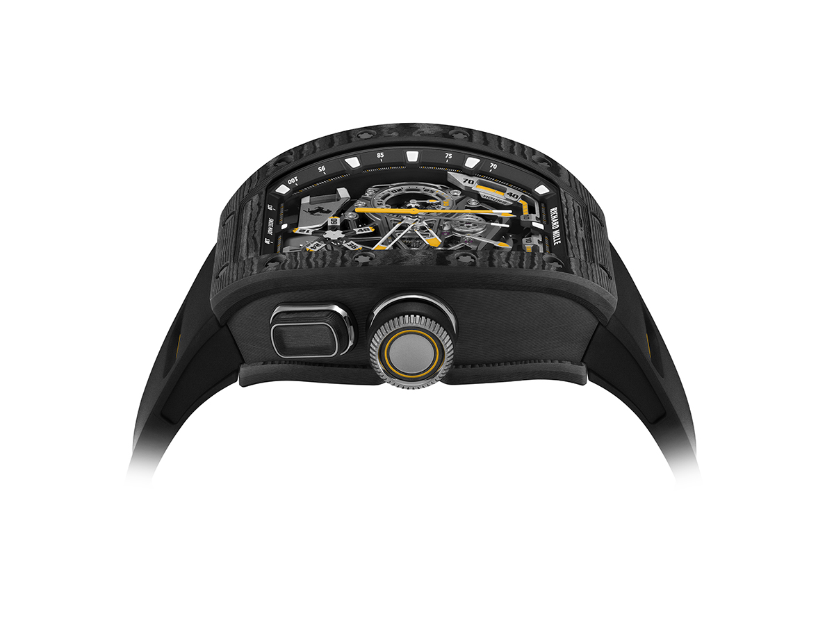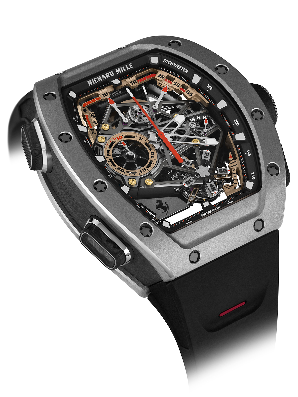 بالنسبة لكل من ريتشارد ميل وفيراري، كان كرونوغراف التوربيون ذو الثواني المنفصلة يُنظر إليه على أنه الأساس الجوهري للساعة الجديدة. إنه متجذّر في الاندماج السلس بين اثنين من أكثر تعقيدات صناعة الساعات شهرةً وتعقيدًا: روعة التوربيون الدوار، والكرونوغراف ذو الثواني المزدوجة لتسجيل الأوقات المنفصلة، وهندسة الحركة المبهرة، والتراث العريق في عالم السيارات.