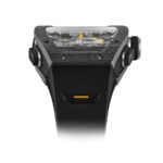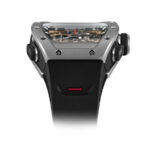 كما أنه يُضفي لمسةً مميزةً على التفاعل المذهل بين القوام والمواد والمعالجات والتشطيبات التي تُضفي لمسةً فنيةً على حركةٍ تُجسّد تحفةً فنيةً في عالم صناعة الساعات الديناميكية، مع لمساتٍ إضافية مُصممةٍ لاستحضار أسطح وتباينات وحدات فيراري، مثل أغطية محركاتها وكتلها المصبوبة بالرمل.