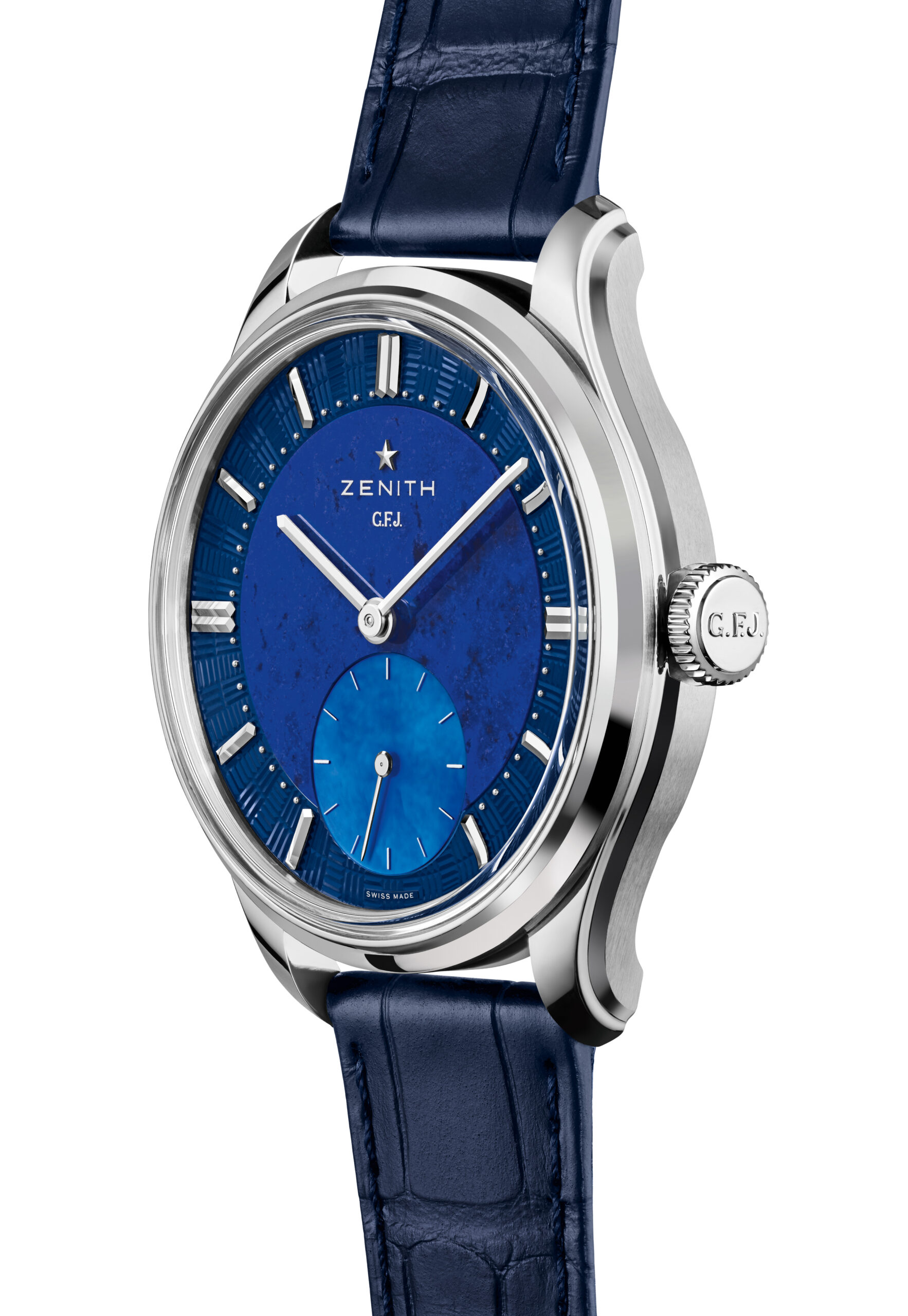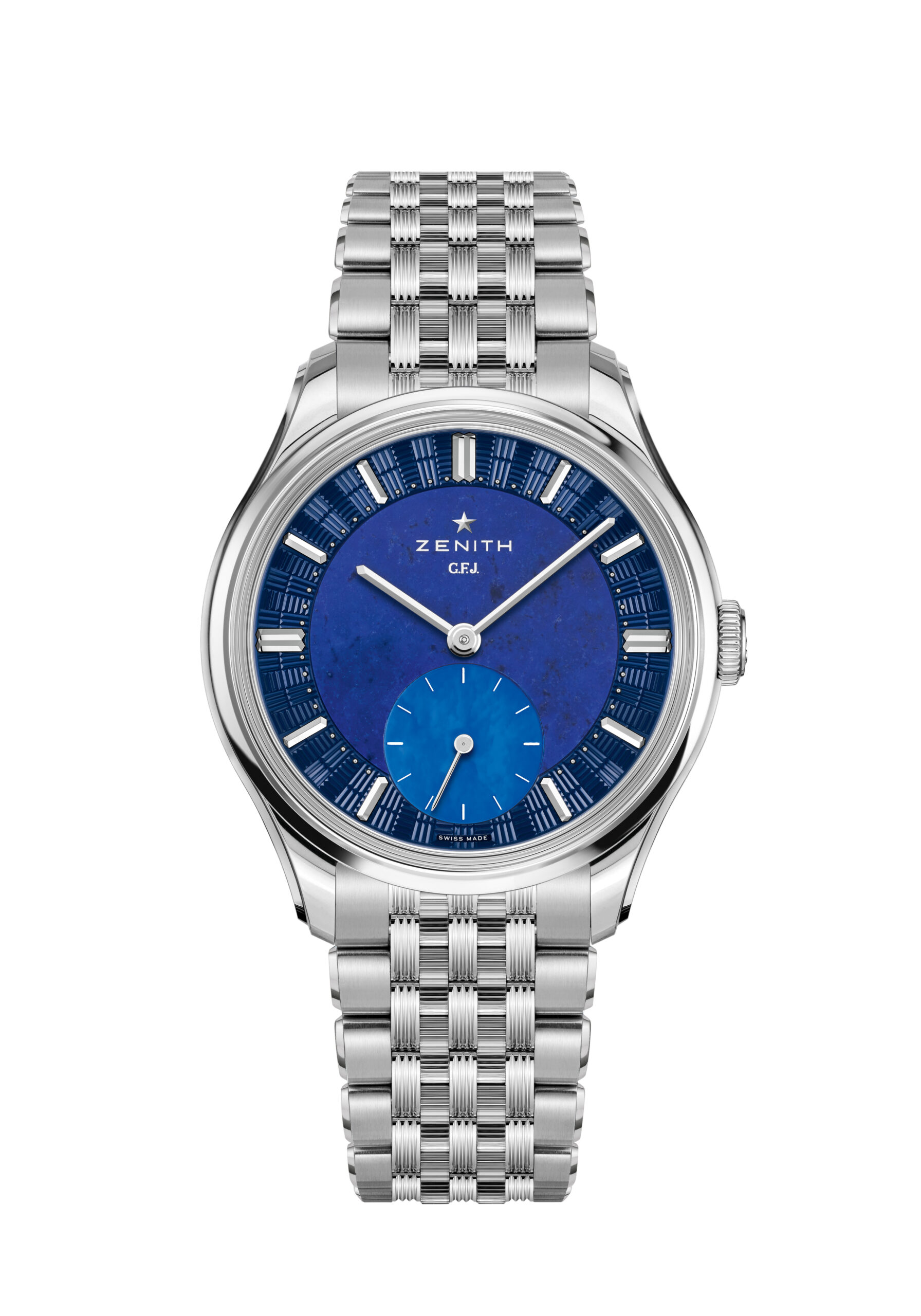 إحتفالا بالذكرى الـ 160 لتأسيس العلامة، تُعيد ساعة زينيث جي. إف. جيه. الجديدة كليًا إحياء حركة كاليبر 135 اليدوية، التي استُخدمت في الأصل بين عامي 1949 و1962. سُميت هذه الساعة تكريمًا لمؤسس الشركة، جورج فافر جاكو، وهي شهادة على تفاني زينيث في ابتكار أدقّ الساعات وأكثرها موثوقية على مر تاريخها.