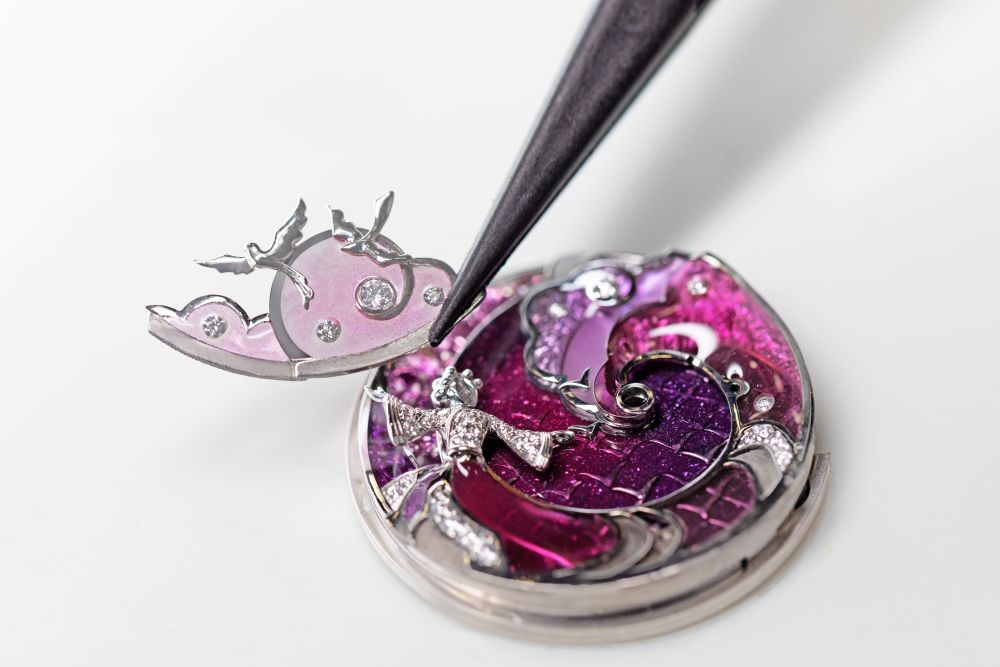 وتُبرز الساعتان براعة الدار في فنون المينا، من تقنية Champlevé وتقنية Grisaille إلى تقنية Plique-à-jour ، إضافة إلى تقنية مبتكرة لترصيع الأحجار داخل المينا مباشرة، ما يمنح التصاميم إحساسًا بالخفة والشفافية.