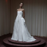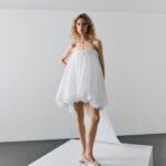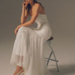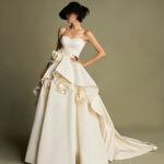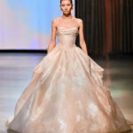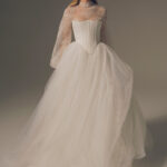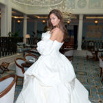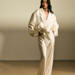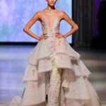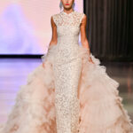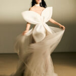 نرى فساتين بأكمام تمتد حتى أطراف الأصابع، أو تنانير تنفتح كبتلات زهرة ضخمة مع كل حركة، دون أن تفقد رشاقتها. تستمد هذه التصاميم قوتها من التناقض الجميل بين الهشاشة والعظمة، بين ما يبدو خفيفًا كنسمة، وما يُبنى بعناية كمنحوتة فنية.