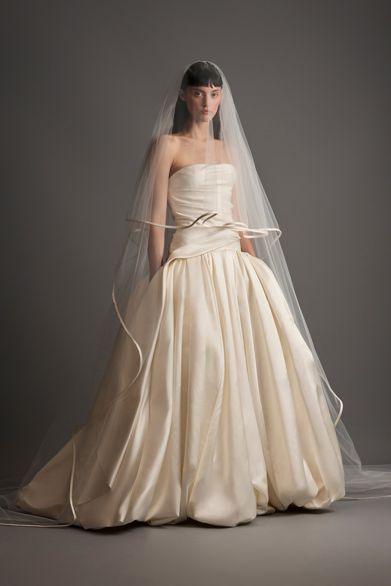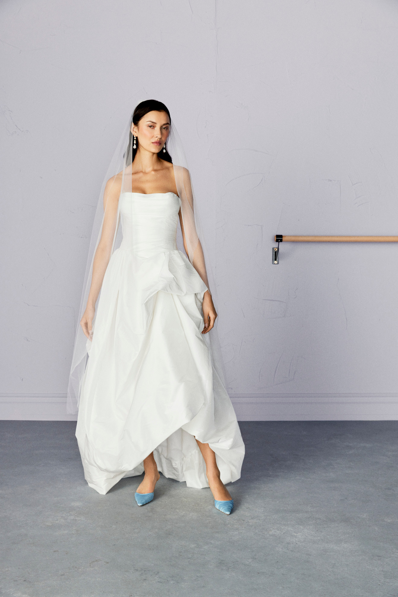 حتى الطرحة الطويلة — رمز الزفاف الأبدي — تعود بخطوط نقية بلا تطريز، بينما تتناغم مع أقراط لؤلؤية صغيرة أو إكسسوارات شعر بسيطة من الذهب الأبيض.
