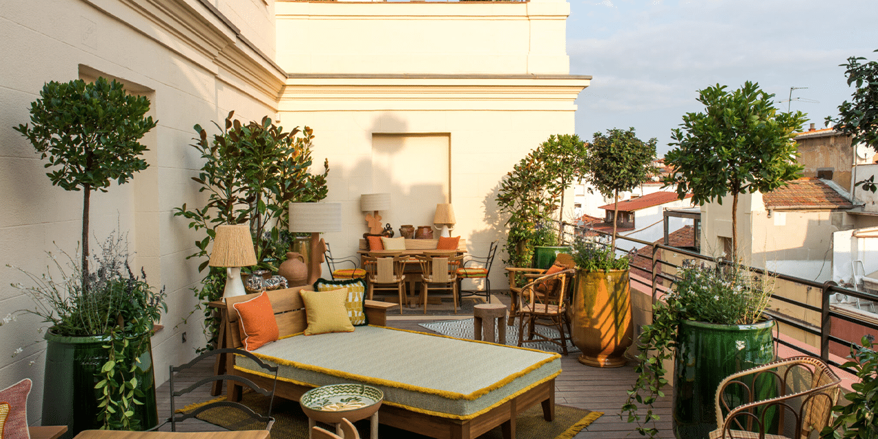وفي الطابق السابع، يكشف التراس المعلّق عن مشهدٍ بانورامي لأفق مدريد، حيث يلتقي غروب الشمس بأضواء المدينة في مشهد يختزل الجمال والسكينة.
