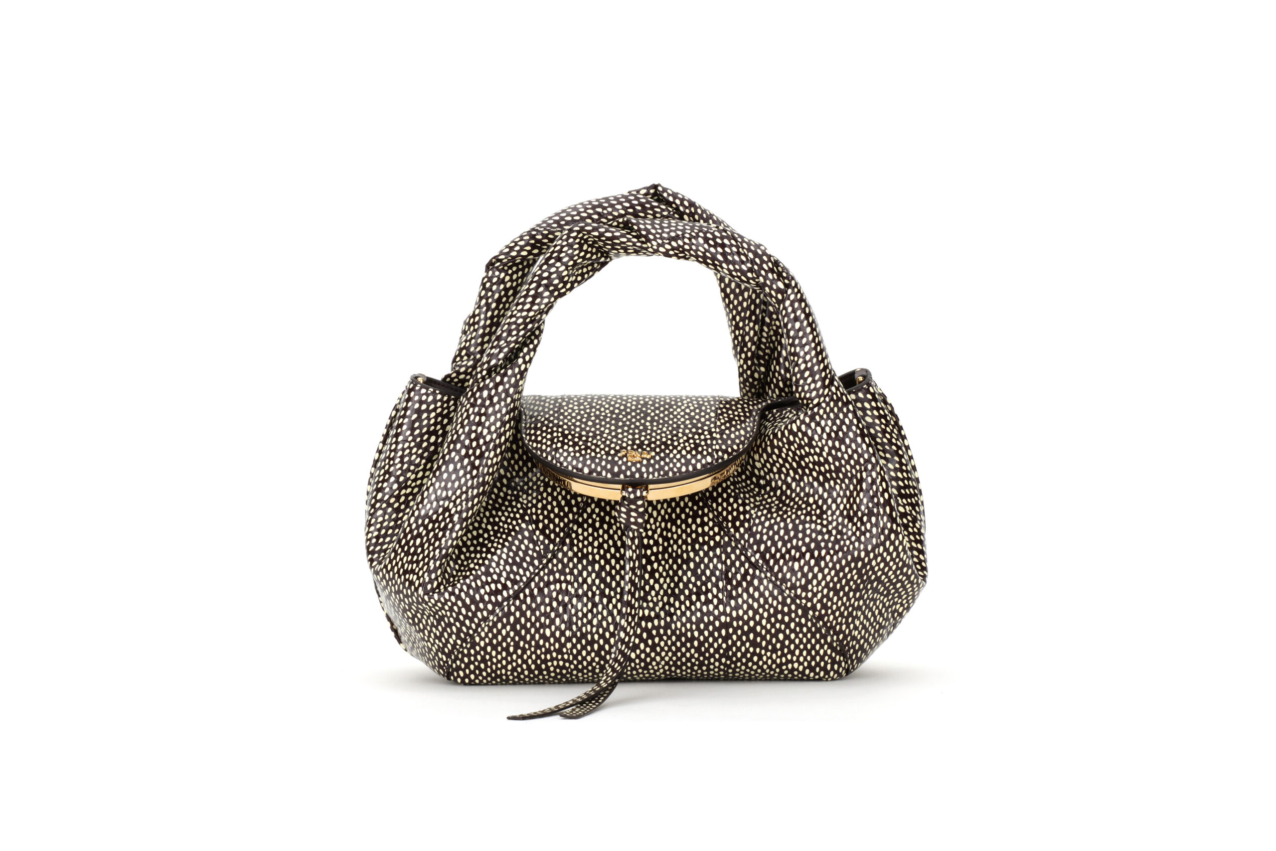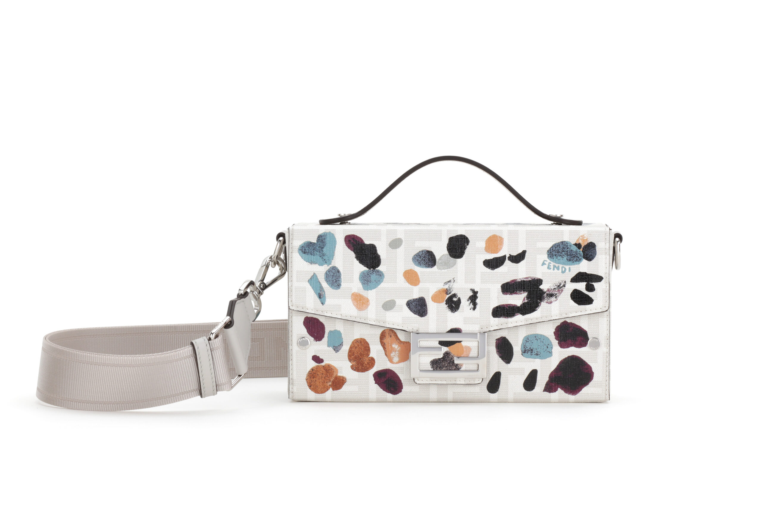 أما الأحذية، فتتنوع بين صندل بكعب مقوّس ومفتوح من الأمام، وأحذية عالية الكعب من جلد العجل بلونين نابضين بالحياة، وصولاً إلى Colibri’ pumps المزيّنة بشرائط ناعمة من الساتان. وتبدو مشابك O’Lock وأقراط FF التي صمّمتها دلفينا ديليتريز فندي وكأنها ترقص كدمىً مرصعة بالمجوهرات، فتزدان باللآلئ والشرائط وأحجار الكريستال في رقصة فريدة من نوعها.