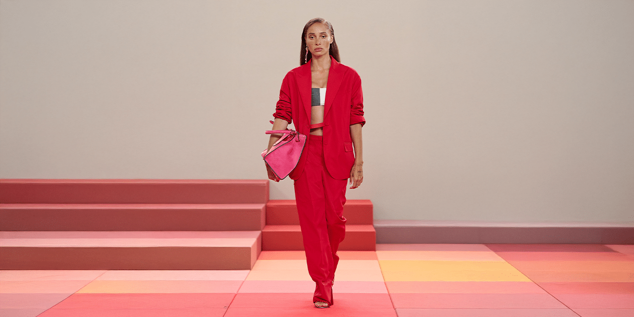 ساهم المصمم الصناعي مارك نيوسن في صياغة لوحة لونية تنبض بالحركة، استمدت تدرجاتها من هوية الدار الأساسية، لتعيد ابتكار النماذج التقليدية بأسلوب متجدد. الألوان الزاهية ظهرت في أشكال نقية وملتفة بخفة حول الجسد، معبّرة عن جدلية بين المساحات الإيجابية والسلبية. برزت ألوان المجموعة كعنصر علاجي يمنح الراحة والبهجة: الأبيض الجريء، الأصفر المشمس، الفيروزي، الأحمر القرمزي، الوردي الفاتح، المرجاني وألوان السكاكر. هذه التدرجات اجتمعت مع نغمات باستيل هادئة ودرجات ترابية محايدة، لتكوّن لوحة متكاملة تُثري التصاميم بخفة وحيوية.