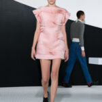 تظهر الخطوط العمودية الدقيقة وكأنها إعلان عن الصرامة والاتزان، بينما تأتي الطيات العفوية لتكسر هذا الانضباط وتفتح المجال أمام لمسة حرة متدفقة. أما الأقمشة، فقد جاءت محاكة بعناية ودقة، في الوقت الذي تُركت فيه بعض الحواف غير مدروزة، لتكشف عن جمال العفوية وما تحمله من صدق وواقعية. هذه الثنائية المتوازنة بين الصنعة المحكمة والعفوية التلقائية تعكس جوهر فلسفة الدار: البساطة ليست تنازلًا عن التعقيد، بل دعوة لاكتشاف الأبعاد الخفية بين النقيضين.