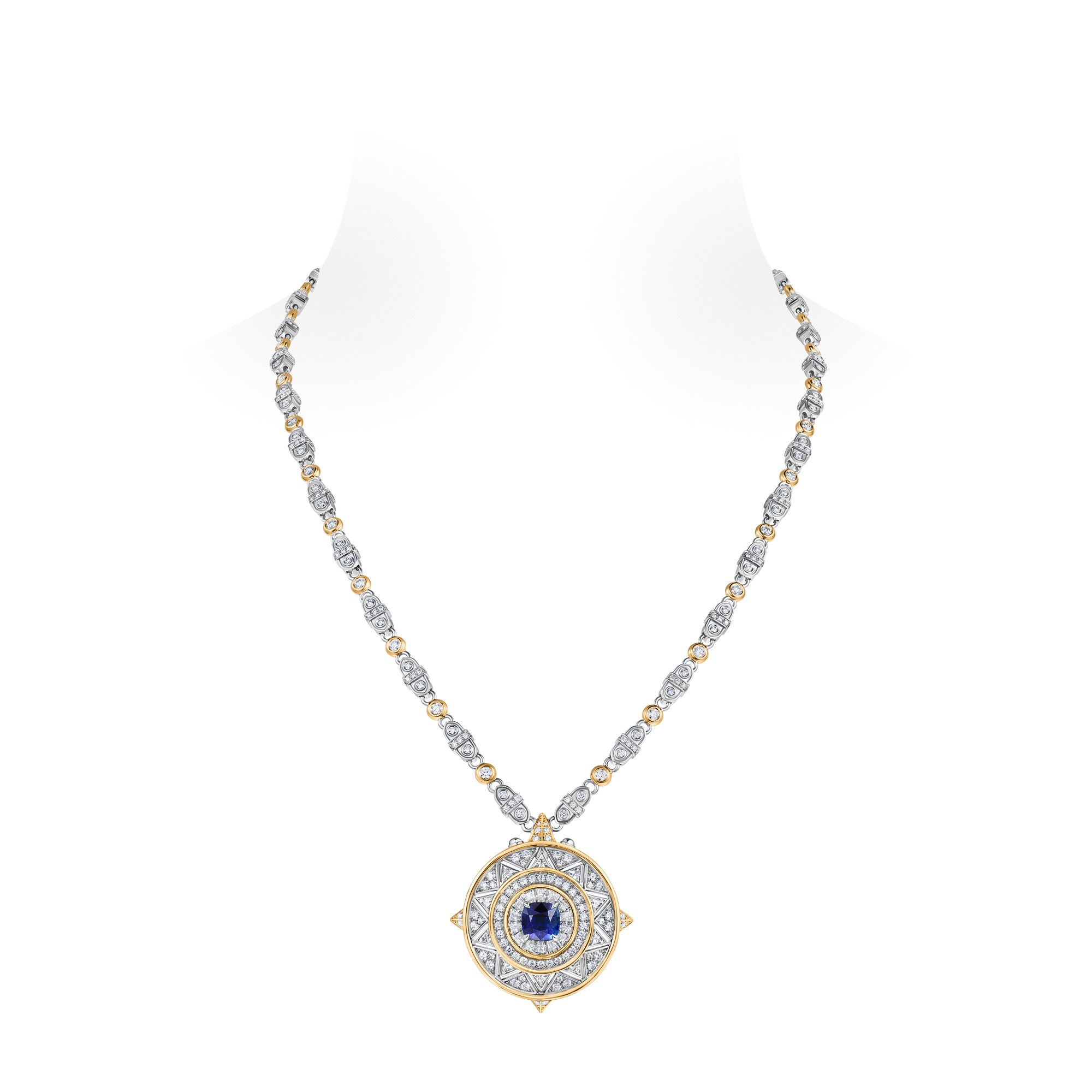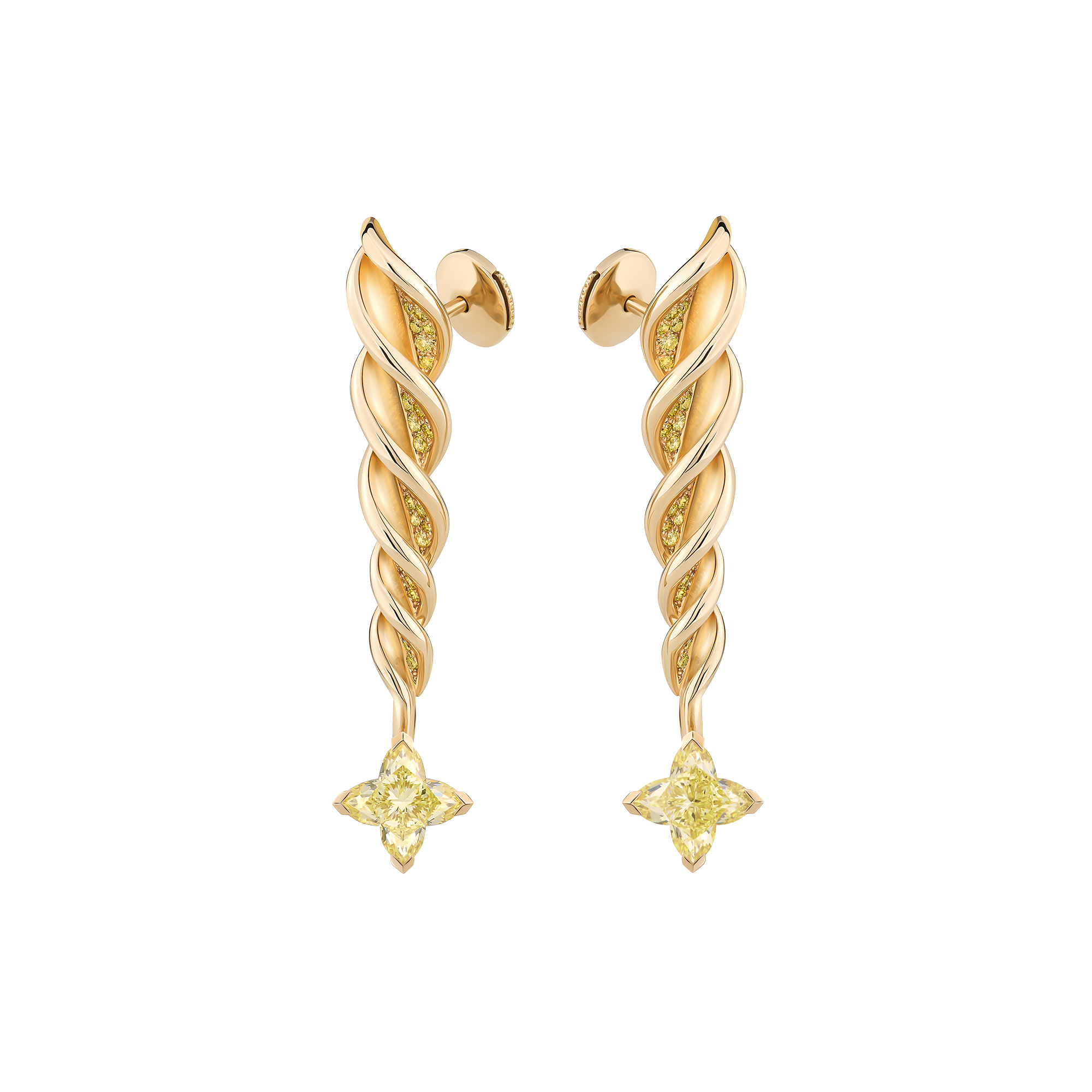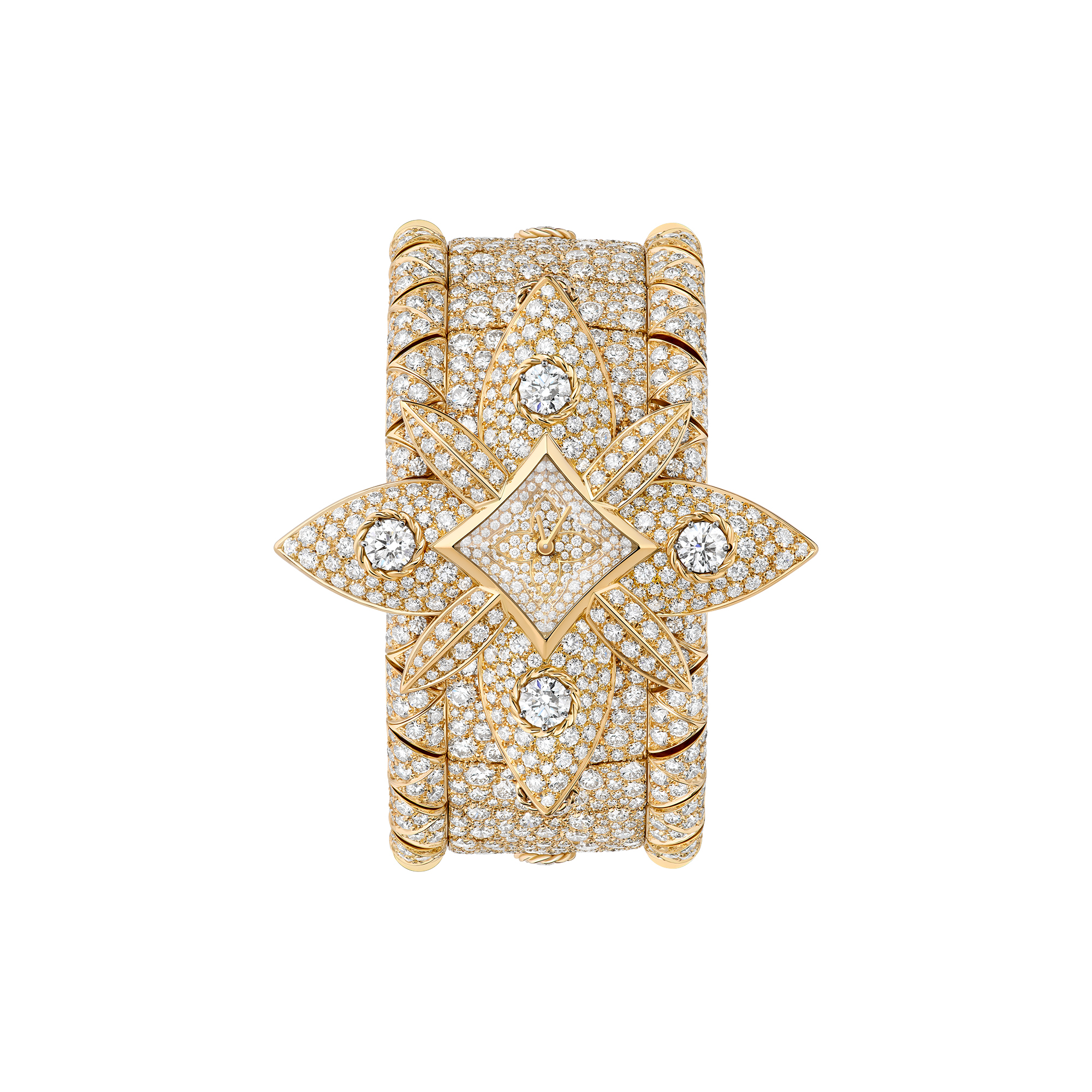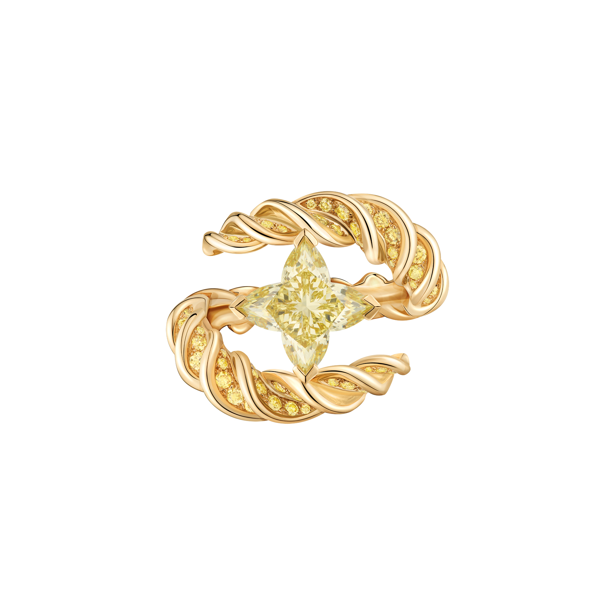 وأخيرًا، ذروة التألق في تشكيلةEternal Sun التي تتميز بتشبع شمسي من الذهب الأصفر والماس الأصفر، مرصعة بتصميم استثنائي وراقٍ تطلب تأمين أحجاره سبع سنوات.