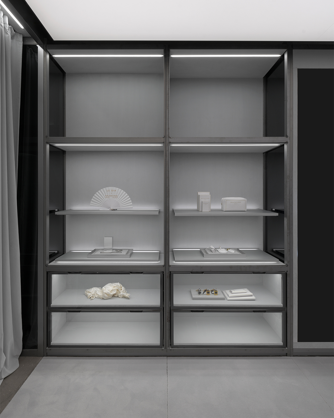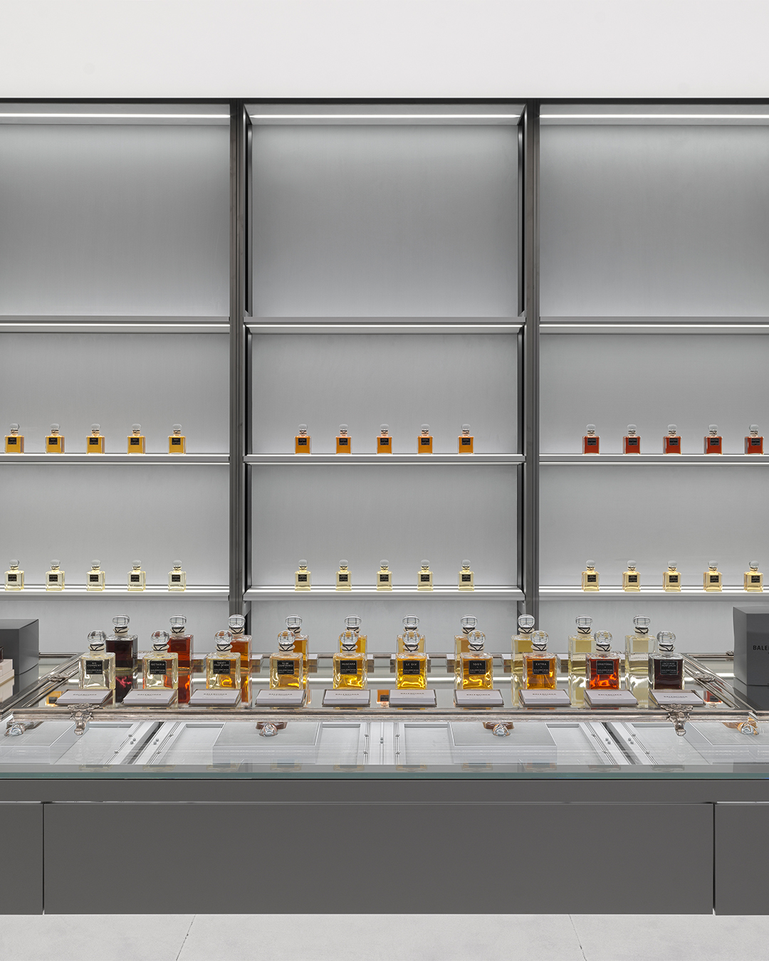 استنادًا إلى رموز متجر بالنسياغا للأزياء الراقية المجاور، يقدم متجر العطور تجربة فريدة لاكتشاف الروائح. يندمج التصميم مع مفهوم الدار المعماري Raw Architecture، الذي يعيد توظيف العناصر الإنشائية القائمة لخلق مساحة عصرية ومبتكرة.
