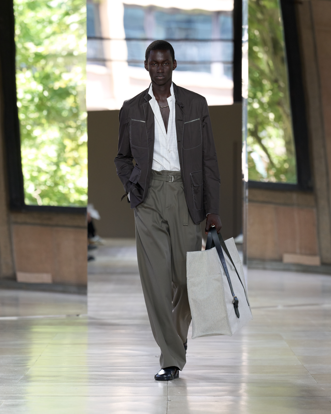 في قلب قصر Palais d’Iéna، قدّمت دار هيرميس Hermès عرضها الرجالي لموسم ربيع وصيف 2026، في مشهد بصري يحاكي مدينة خيالية من الضوء والخطوط الحادة والملامس الراقية. تحت إشراف المدير الإبداعي بيار ألكسيس دوما، أعادت هيرميس من خلال هذه المجموعة صياغة مفهوم الأناقة الصيفية من منظور حضريّ هندسي، يجمع بين الحرفية العالية والراحة المطلقة.
