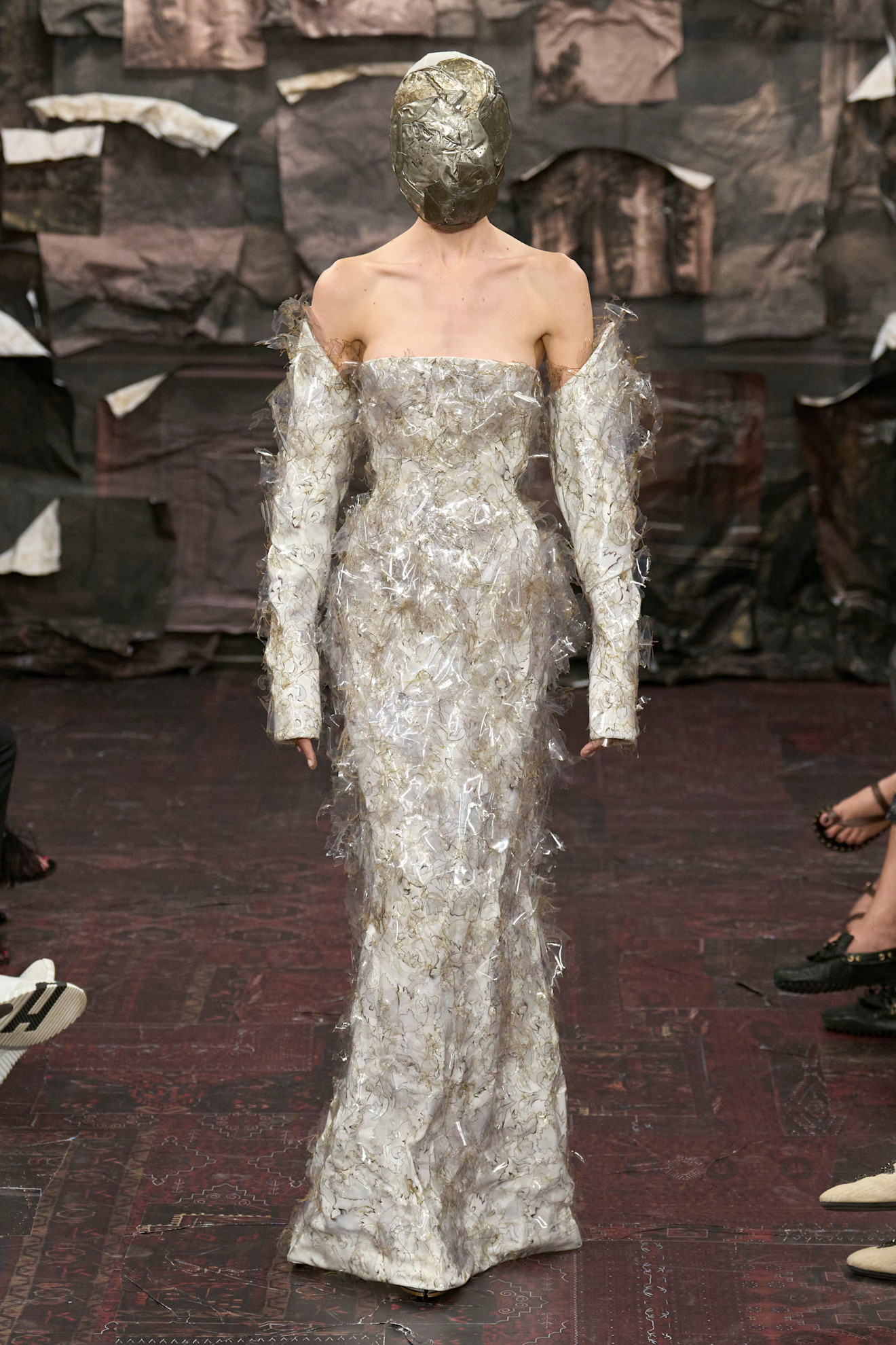 حمل العرض إشارات إلى رموز مختلفة، منها “الطيور الغاضبة” ومواضيع عن الازدواجية التي لطالما رافقت أسلوب فيكتور آند رولف. بدت الإطلالات المنتفخة غنيّة بصرياً، لكنّها لم تصل إلى مستوى الإبهار الكامل، فيما جاءت النسخ المفرّغة أكثر أناقة وهدوءاً، إنّما أقل تأثيراً من الناحية البصرية.