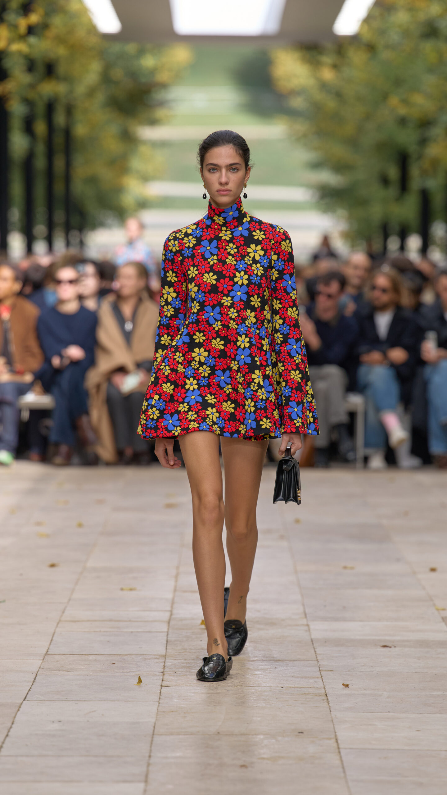 اختار المصمم الأميركي حديقة بارك دو سان-كلو خارج العاصمة كموقع للعرض، بعيدًا عن صخب المدينة وعن مقرّ الدار في قلب باريس. وسط الأشجار المظلّلة ونسمات الخريف المعتدلة، تحوّل الممرّ الأخضر إلى مسرح مفتوح للأناقة والرؤية الجديدة التي يقودها رايدر منذ تولّيه الإشراف الإبداعي على الدار. وعن هذه المجموعة يشرح رايدر: “أردت ببساطة أن نخرج من المدينة، إلى مكانٍ يشبه النزهة… إلى حديقة نقضي فيها وقتًا جميلًا”.