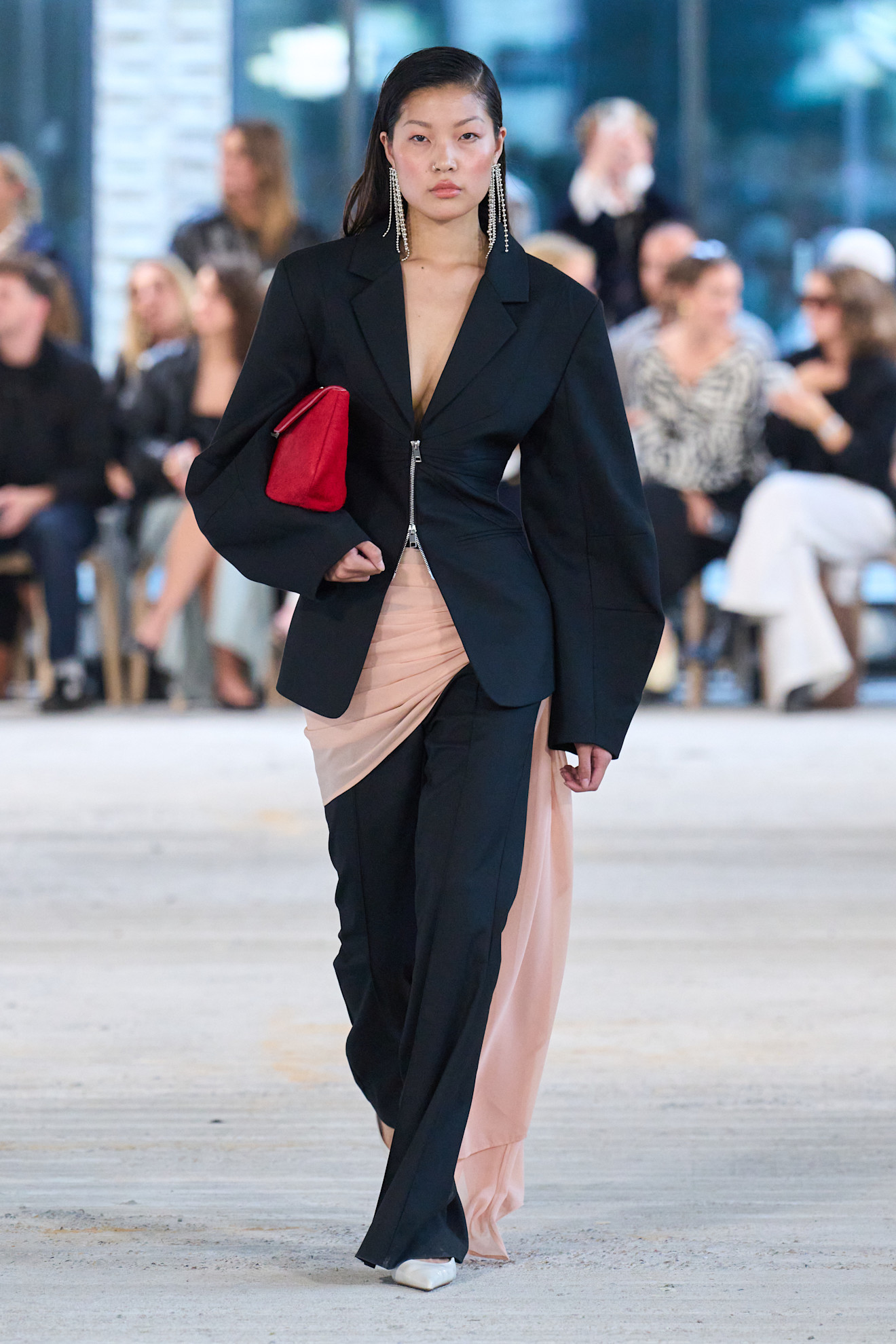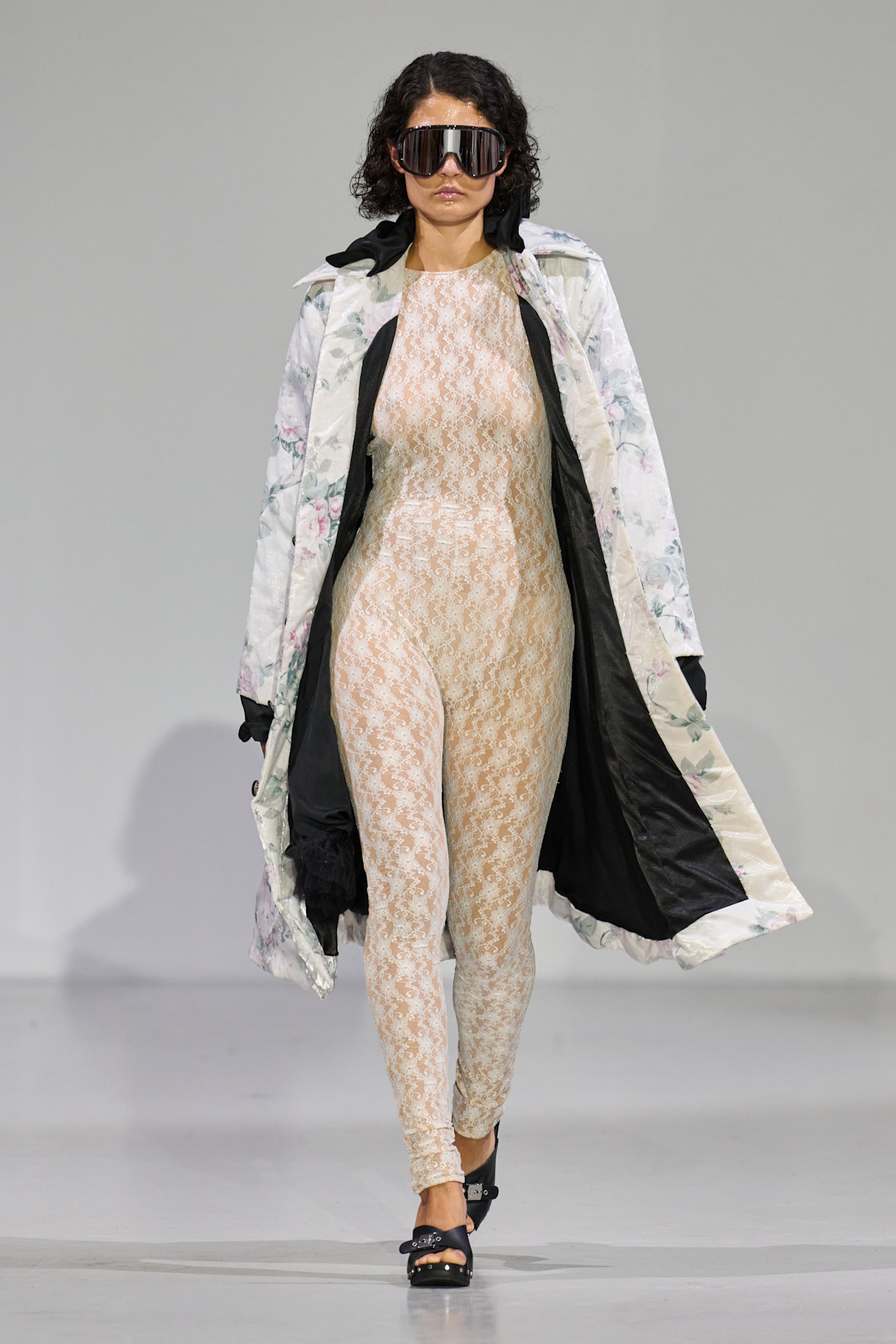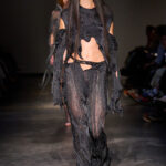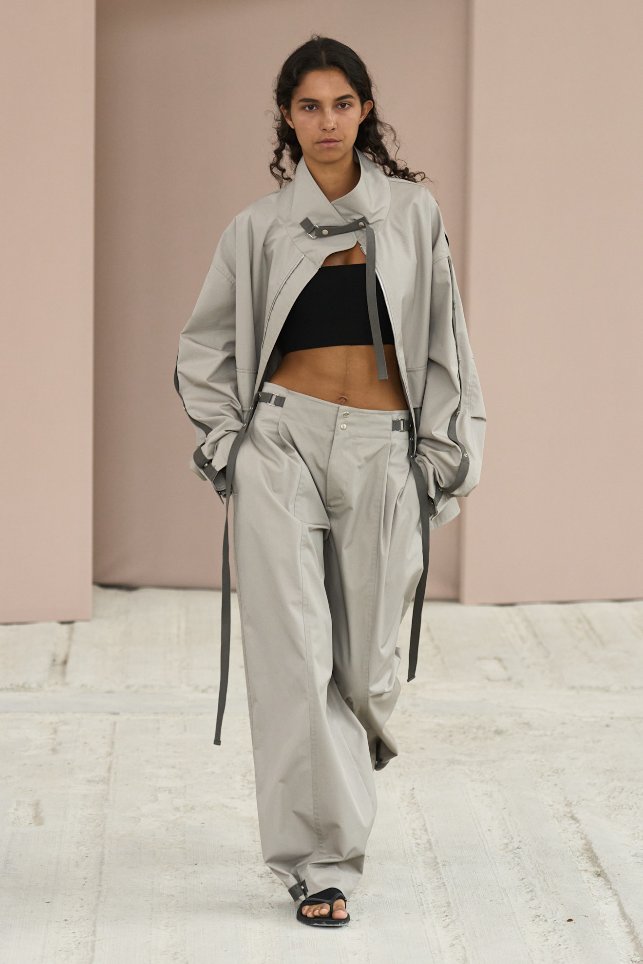 أما عرض Gestuz فكان بمثابة تعليق عاطفي على السرعة المفرطة في عالمنا، مستوحيًا صور سباق الفورمولا 1 ليحوّل المنصة إلى خطاب فني يتناول الحركة والجسد بصريًا، مع قطع من الجلد الخشن، حقائب دعوى، وتناقضات بين القوة والحساسية.
