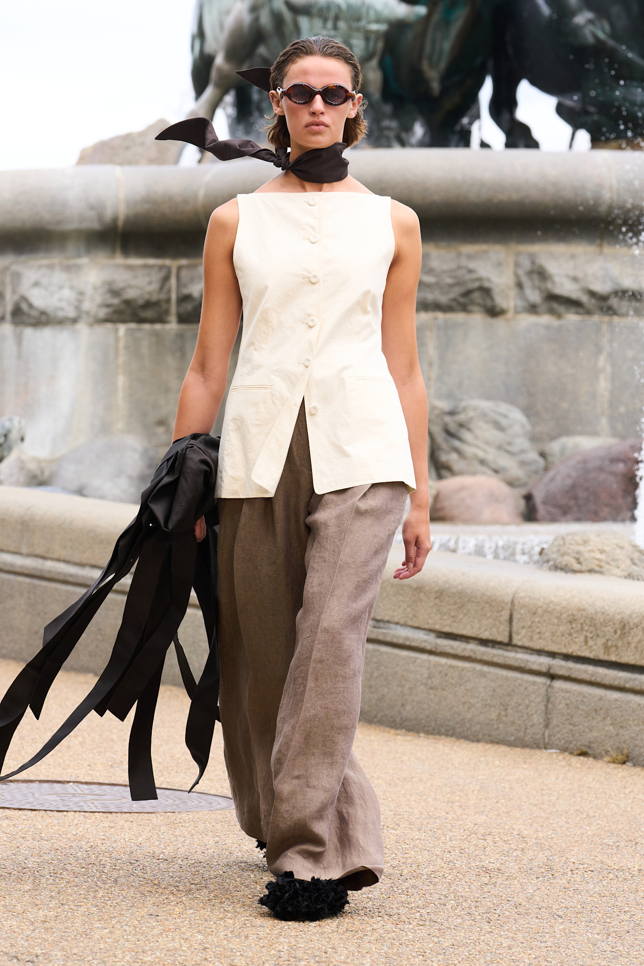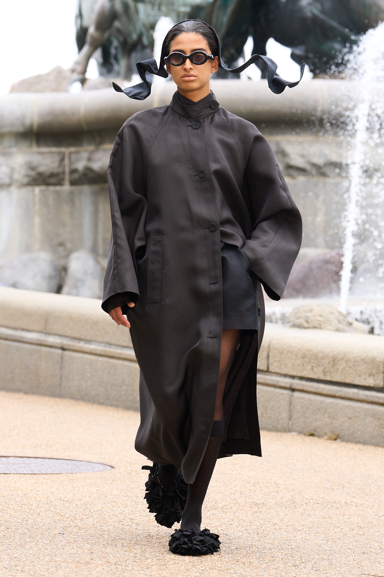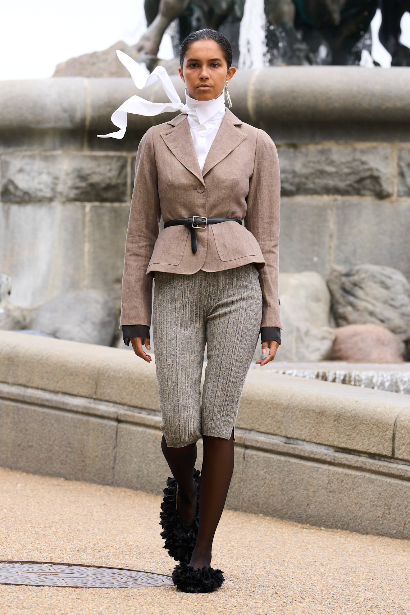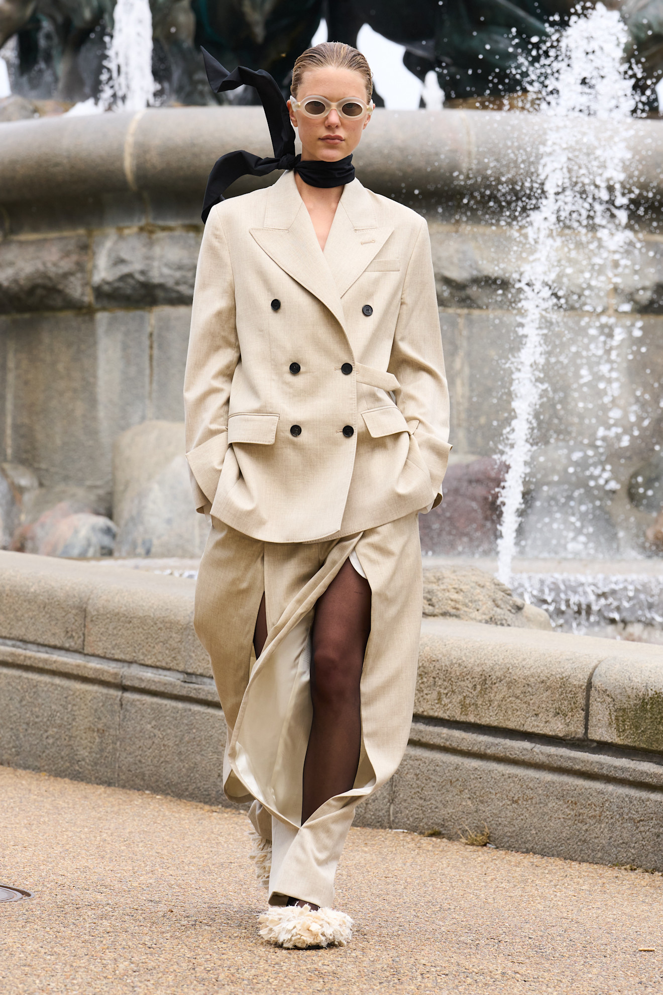 Cecilie Bahnsen، التي تحتفل هذا العام بمرور عقد على انطلاقتها، قدّمت عرضًا أيقونيًا جمع بين إرثها الأرشيفي المعاد تدويره ورؤيتها المعاصرة للكوتور، من خلال قصّات فضفاضة حالمة وأقمشة ترفرف بالأبيض والفضي، لتصنع عوالم ضوئية أشبه ببطاقات بريدية من الحلم الإسكندينافي.