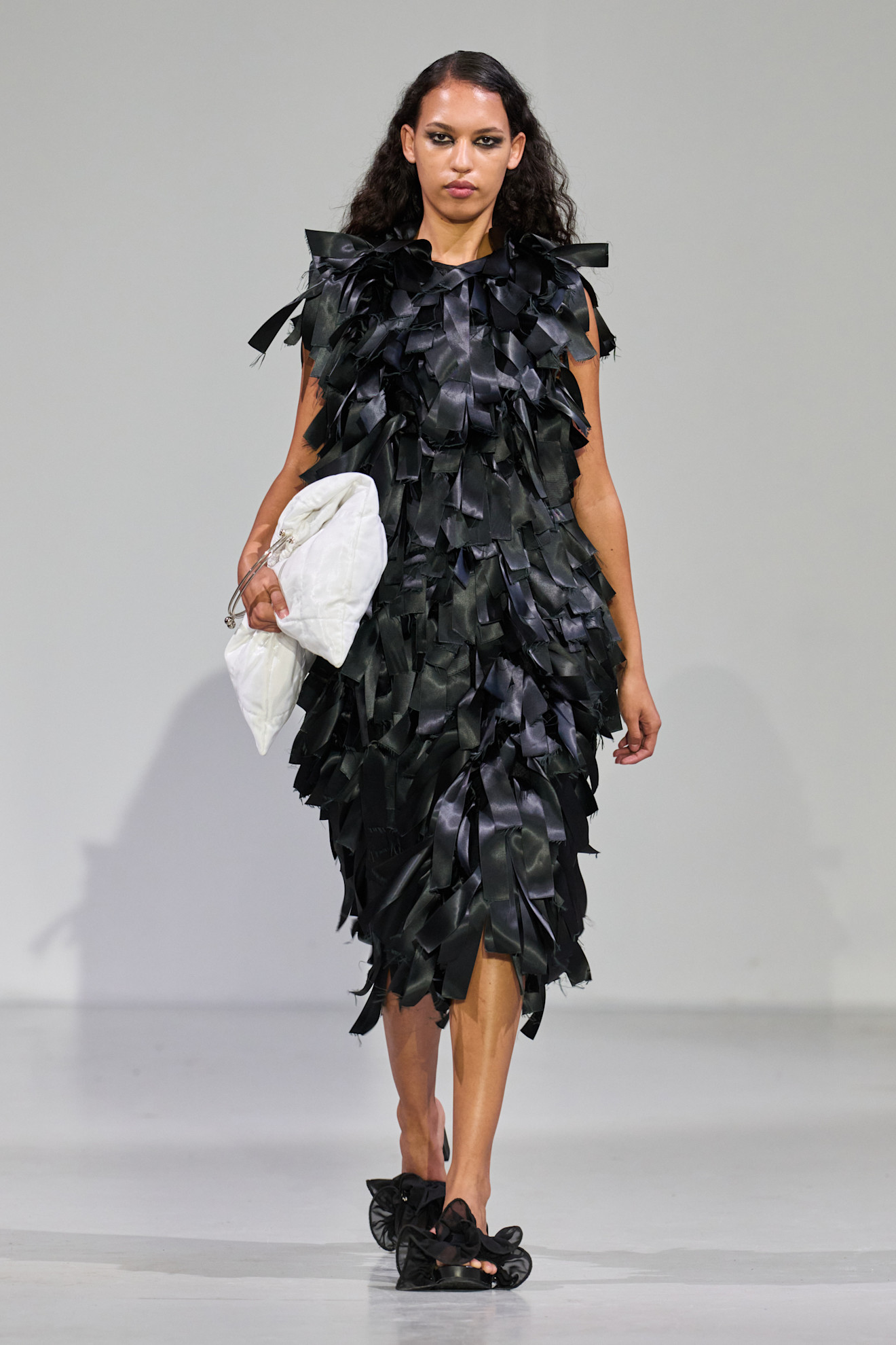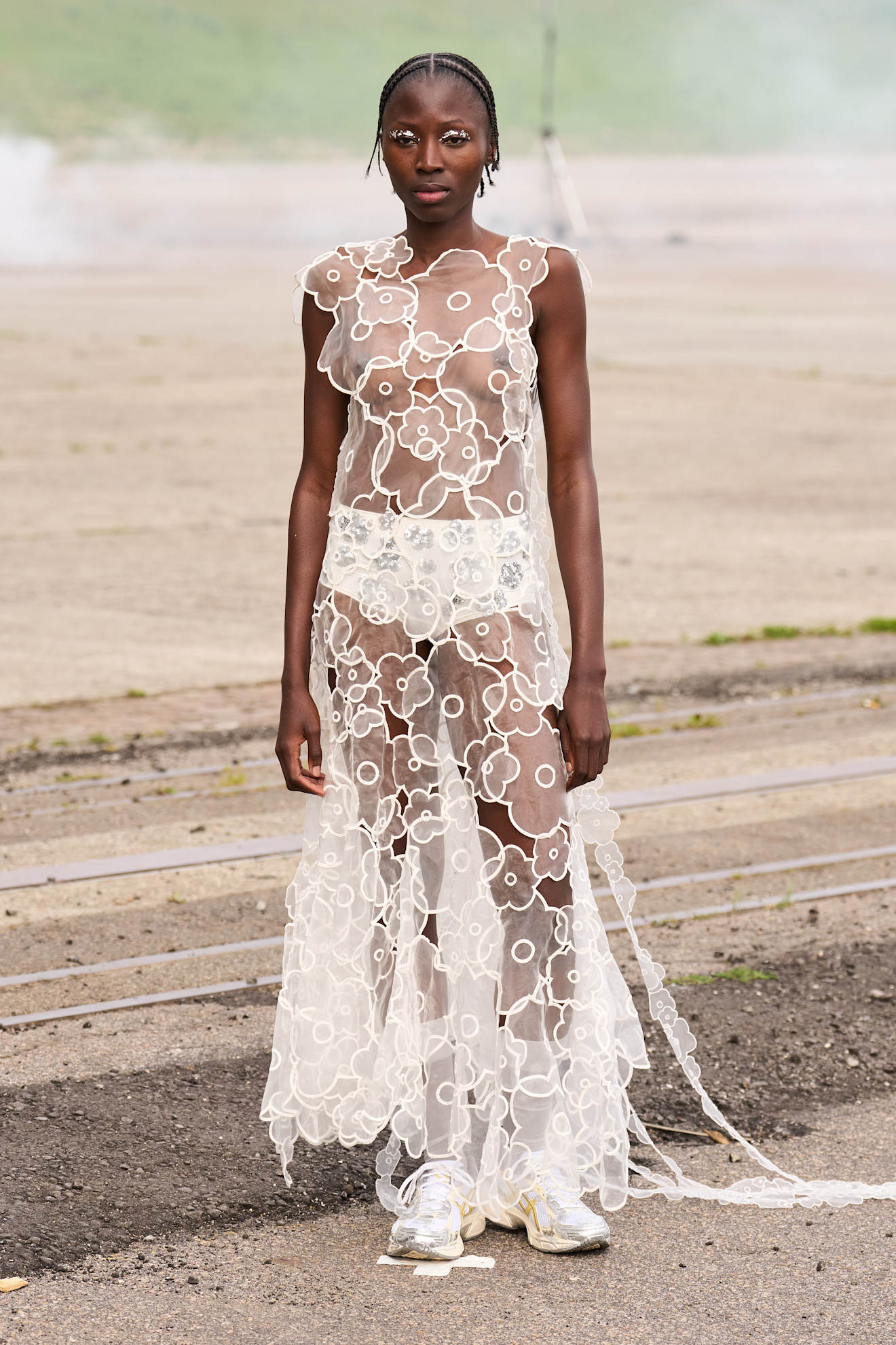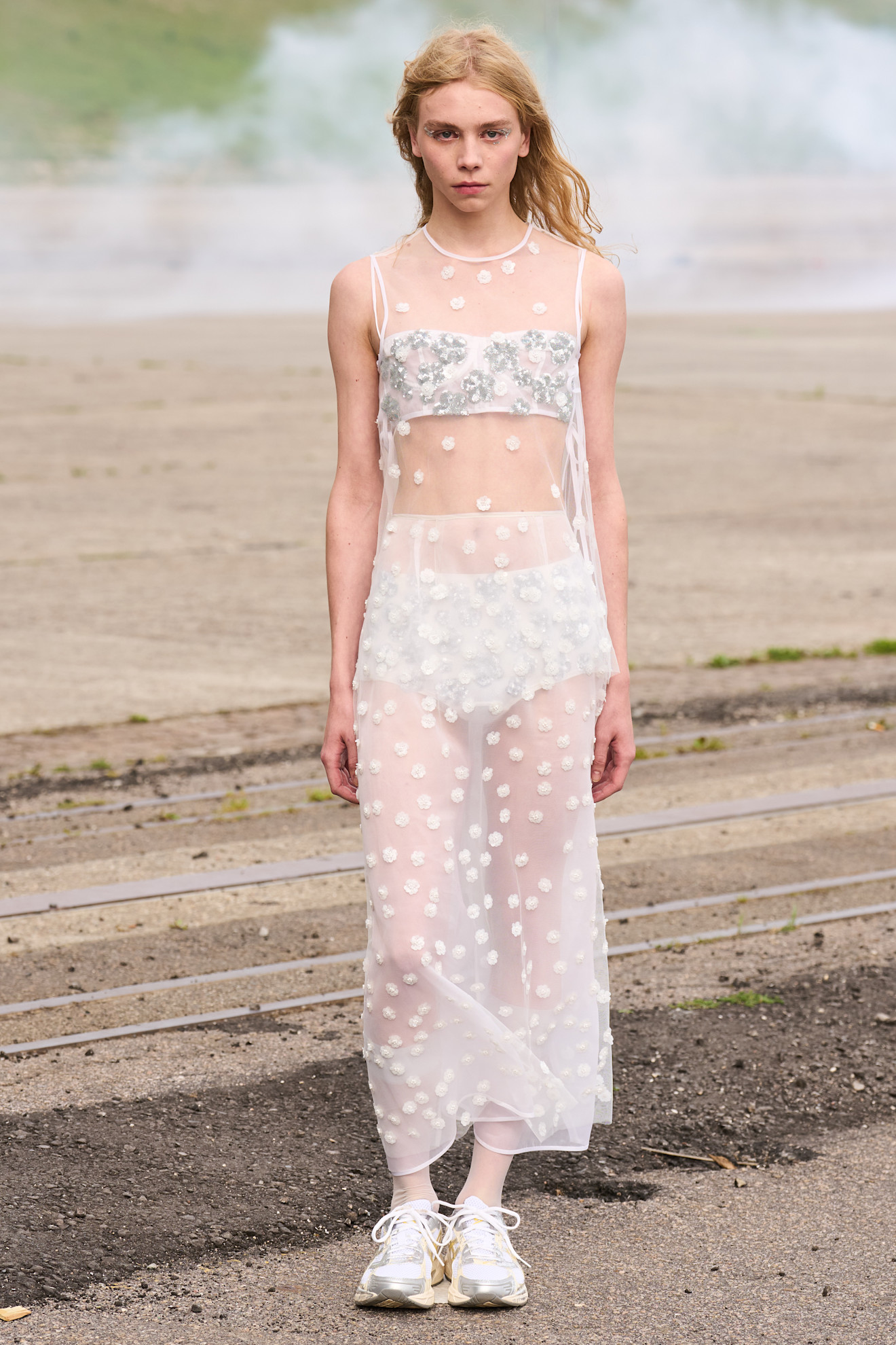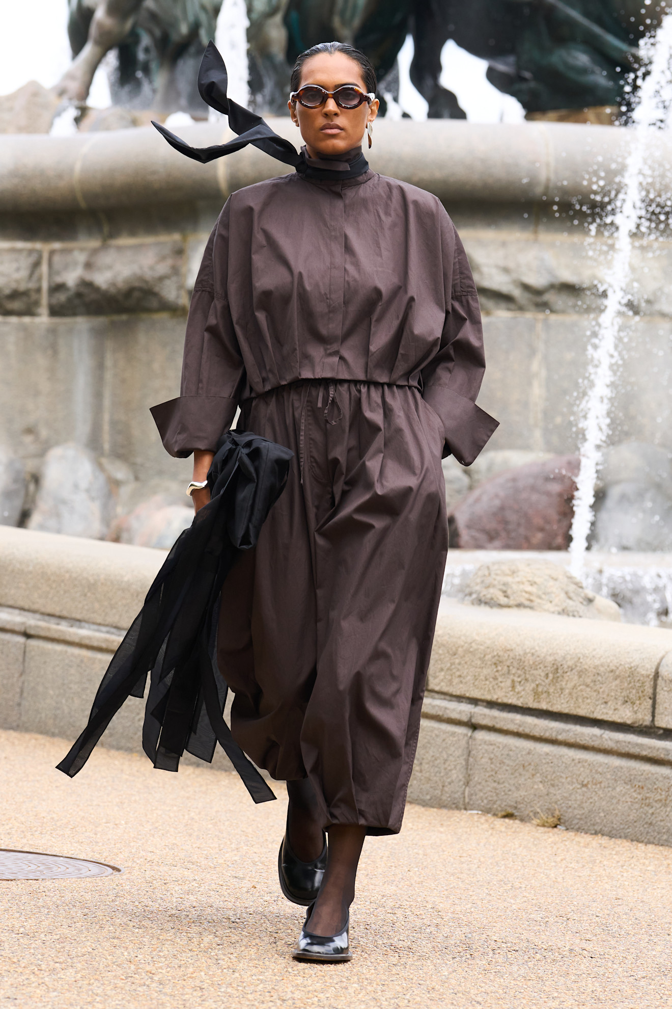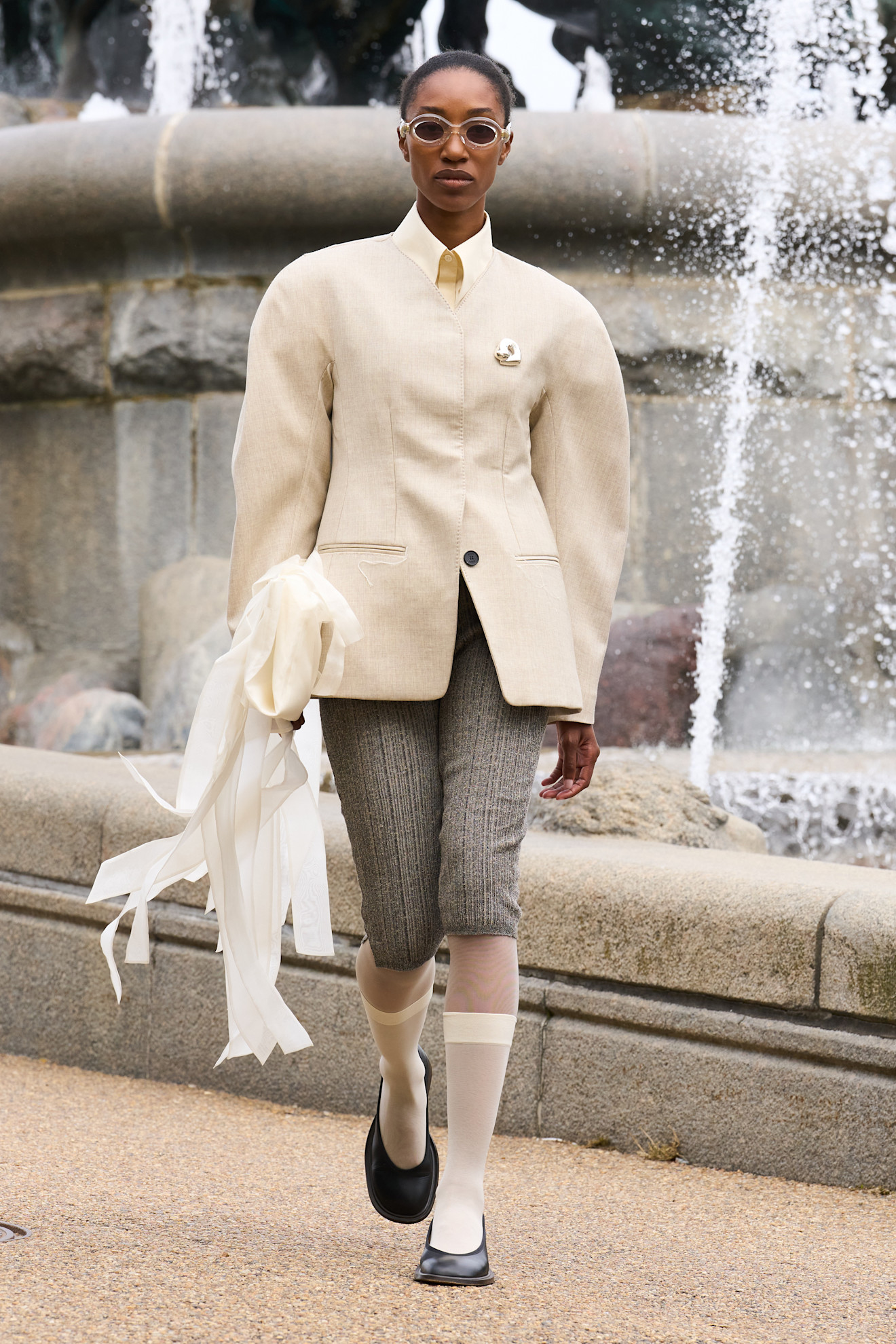 Cecilie Bahnsen، التي تحتفل هذا العام بمرور عقد على انطلاقتها، قدّمت عرضًا أيقونيًا جمع بين إرثها الأرشيفي المعاد تدويره ورؤيتها المعاصرة للكوتور، من خلال قصّات فضفاضة حالمة وأقمشة ترفرف بالأبيض والفضي، لتصنع عوالم ضوئية أشبه ببطاقات بريدية من الحلم الإسكندينافي.