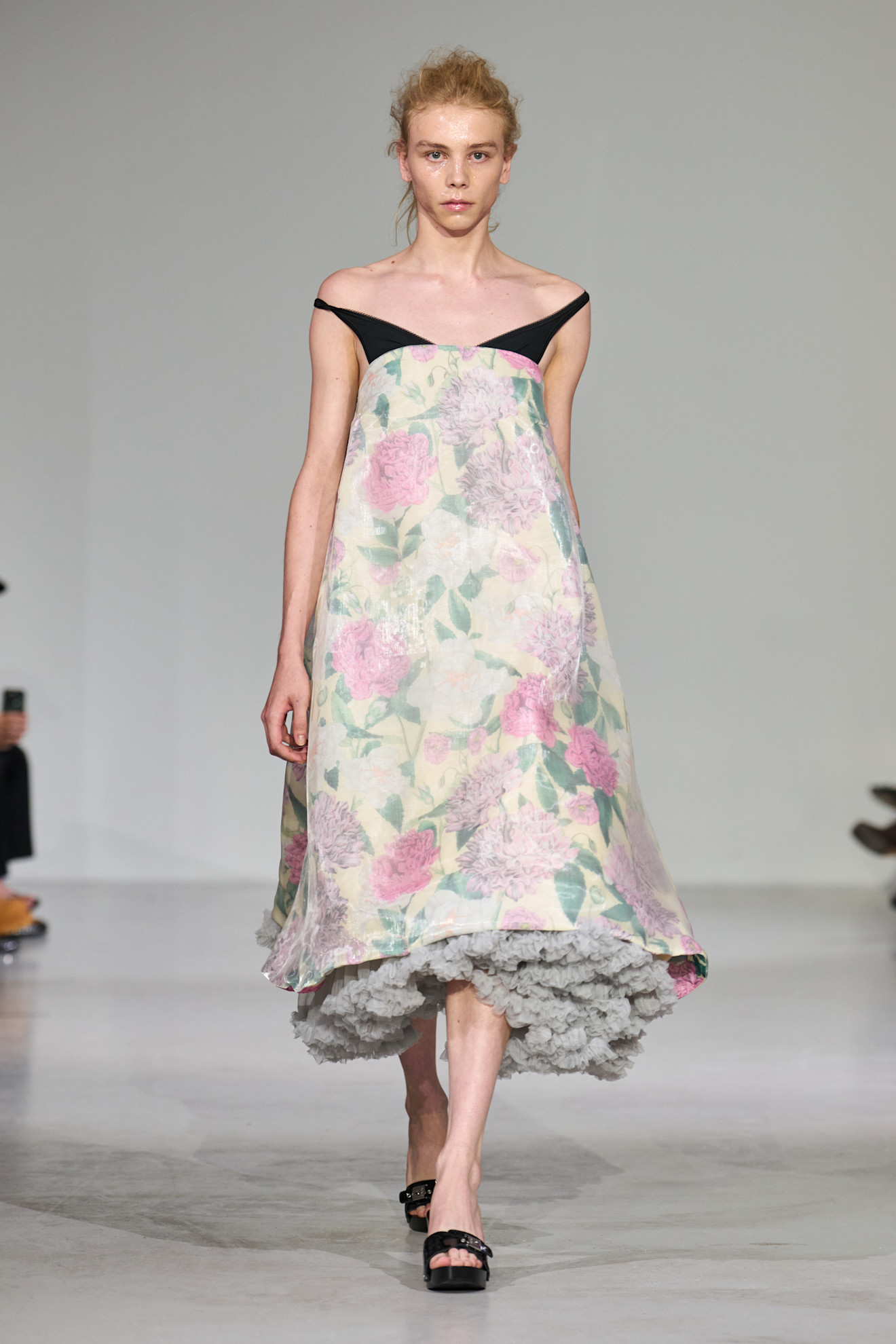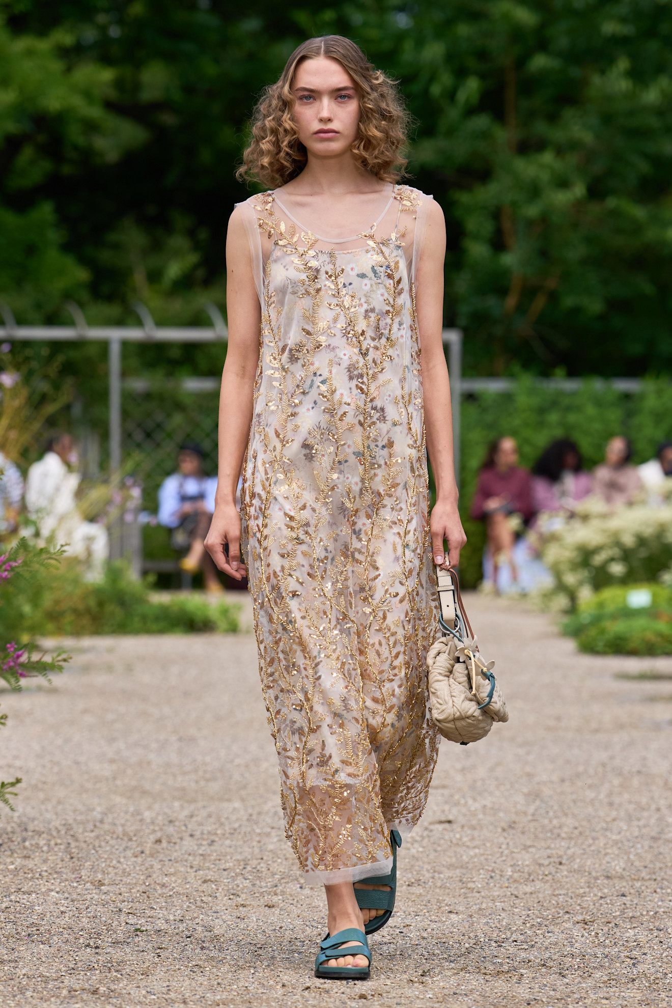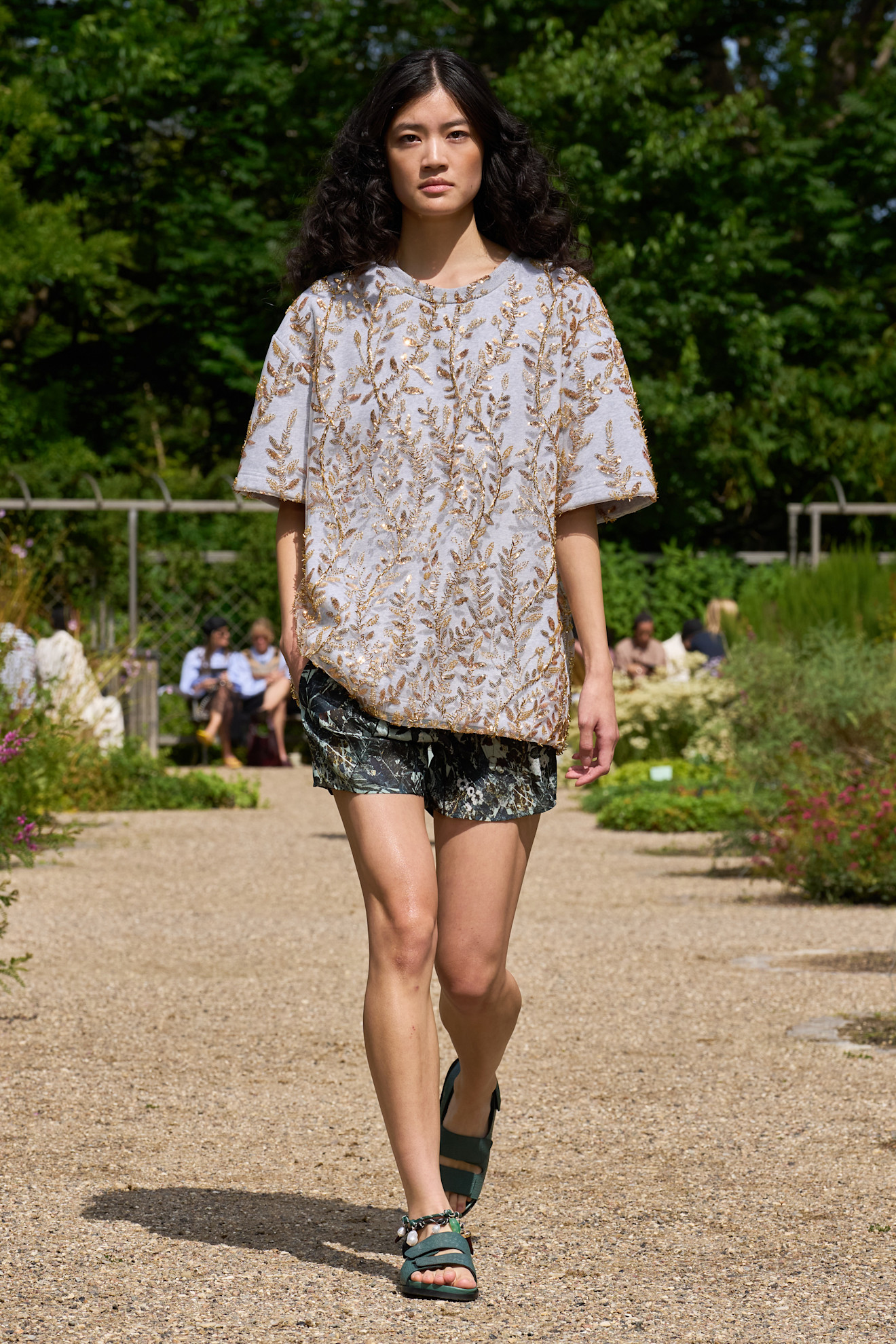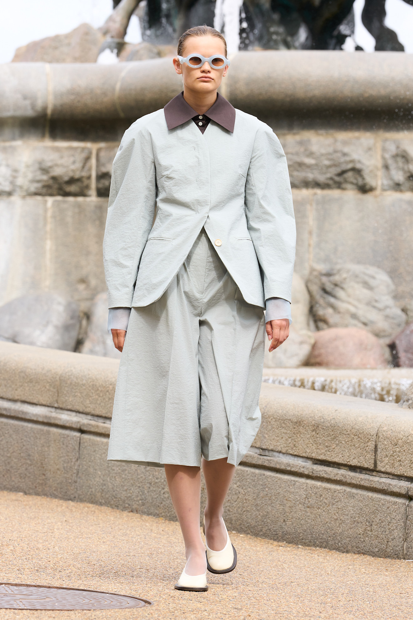 Cecilie Bahnsen، التي تحتفل هذا العام بمرور عقد على انطلاقتها، قدّمت عرضًا أيقونيًا جمع بين إرثها الأرشيفي المعاد تدويره ورؤيتها المعاصرة للكوتور، من خلال قصّات فضفاضة حالمة وأقمشة ترفرف بالأبيض والفضي، لتصنع عوالم ضوئية أشبه ببطاقات بريدية من الحلم الإسكندينافي.