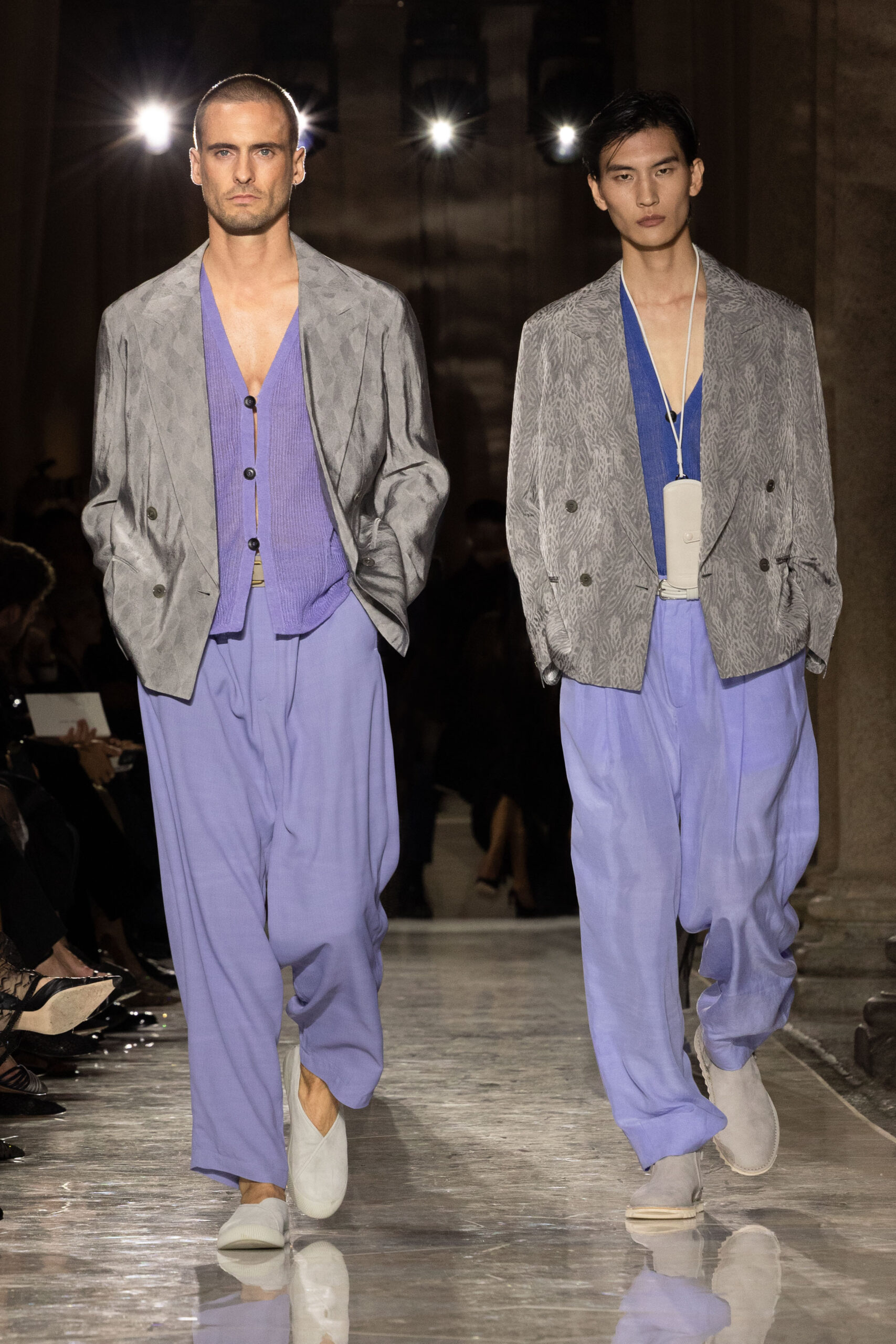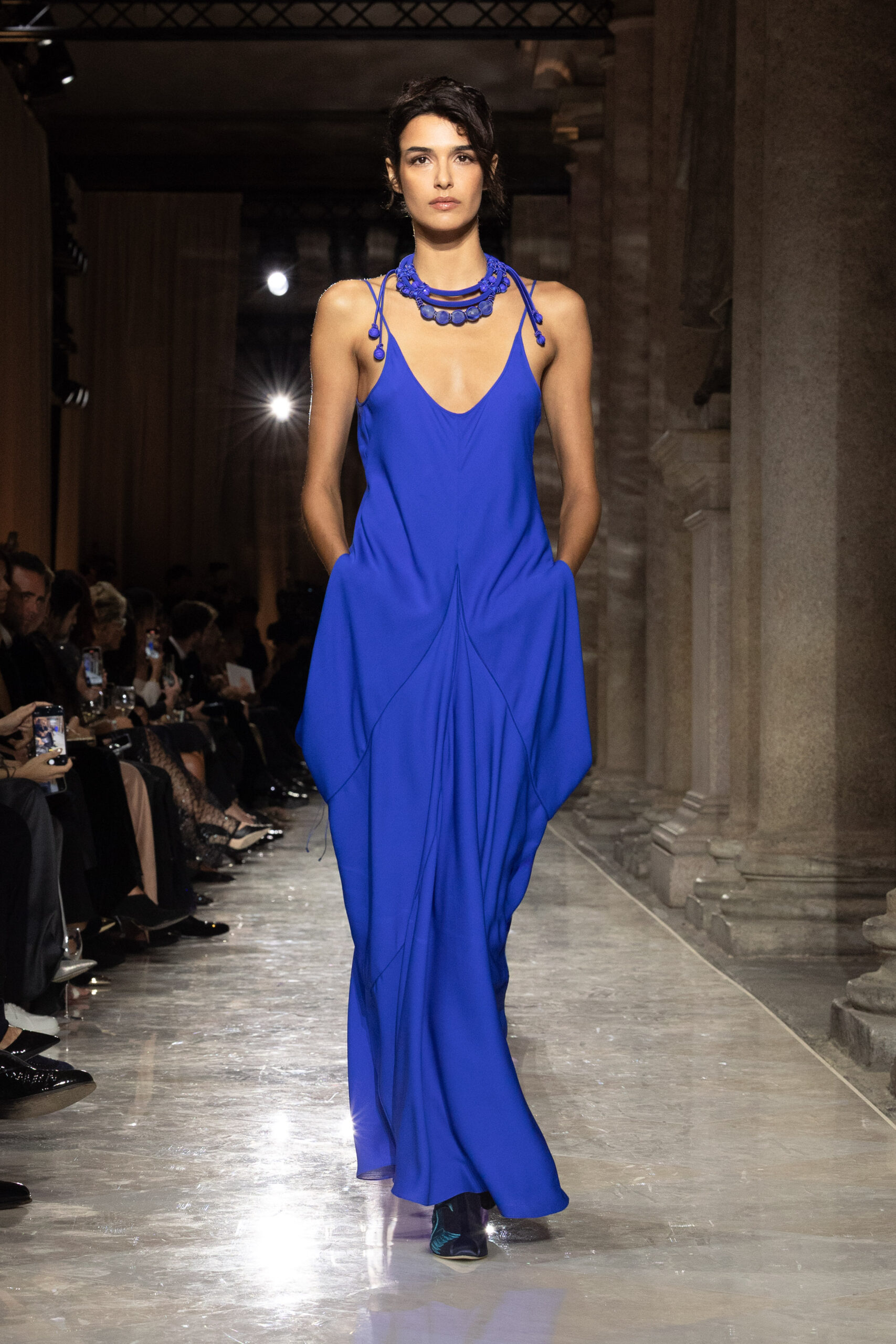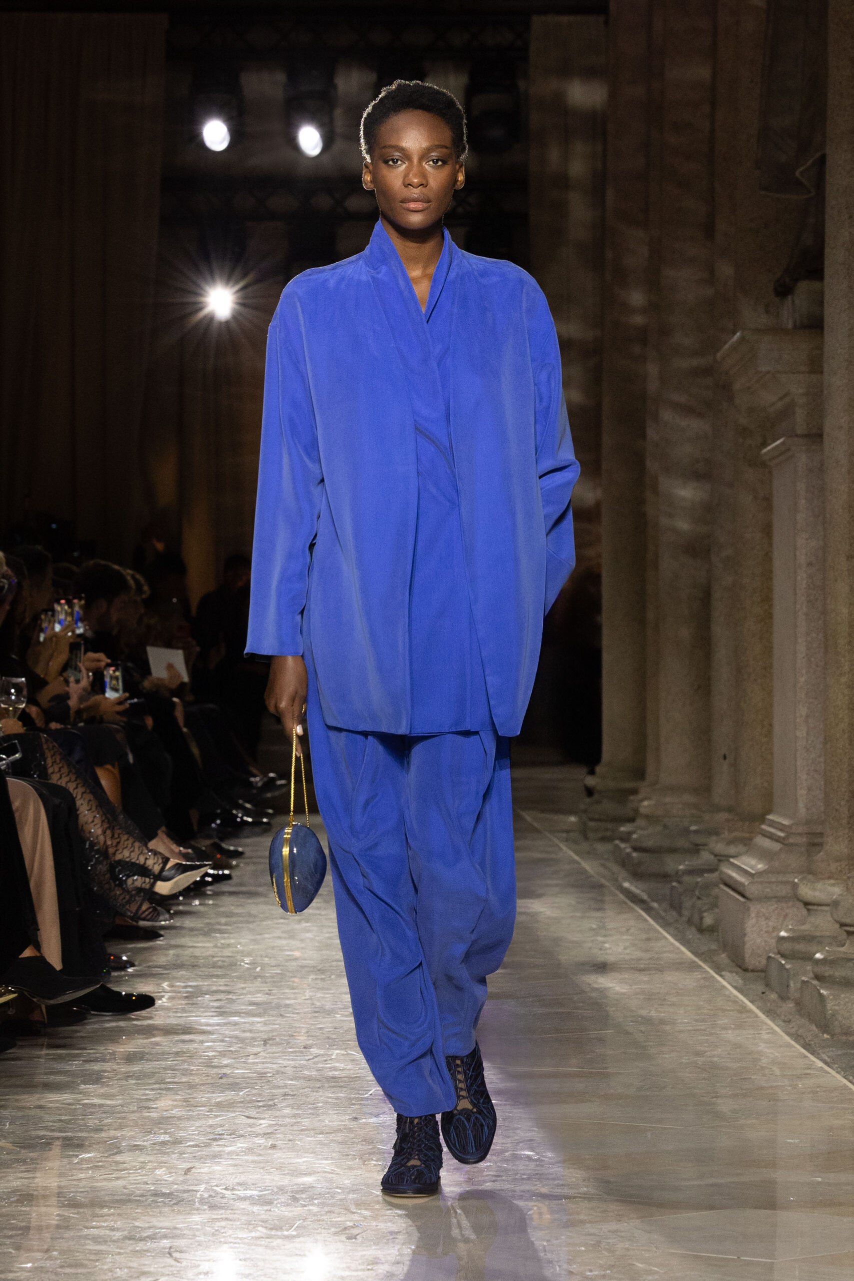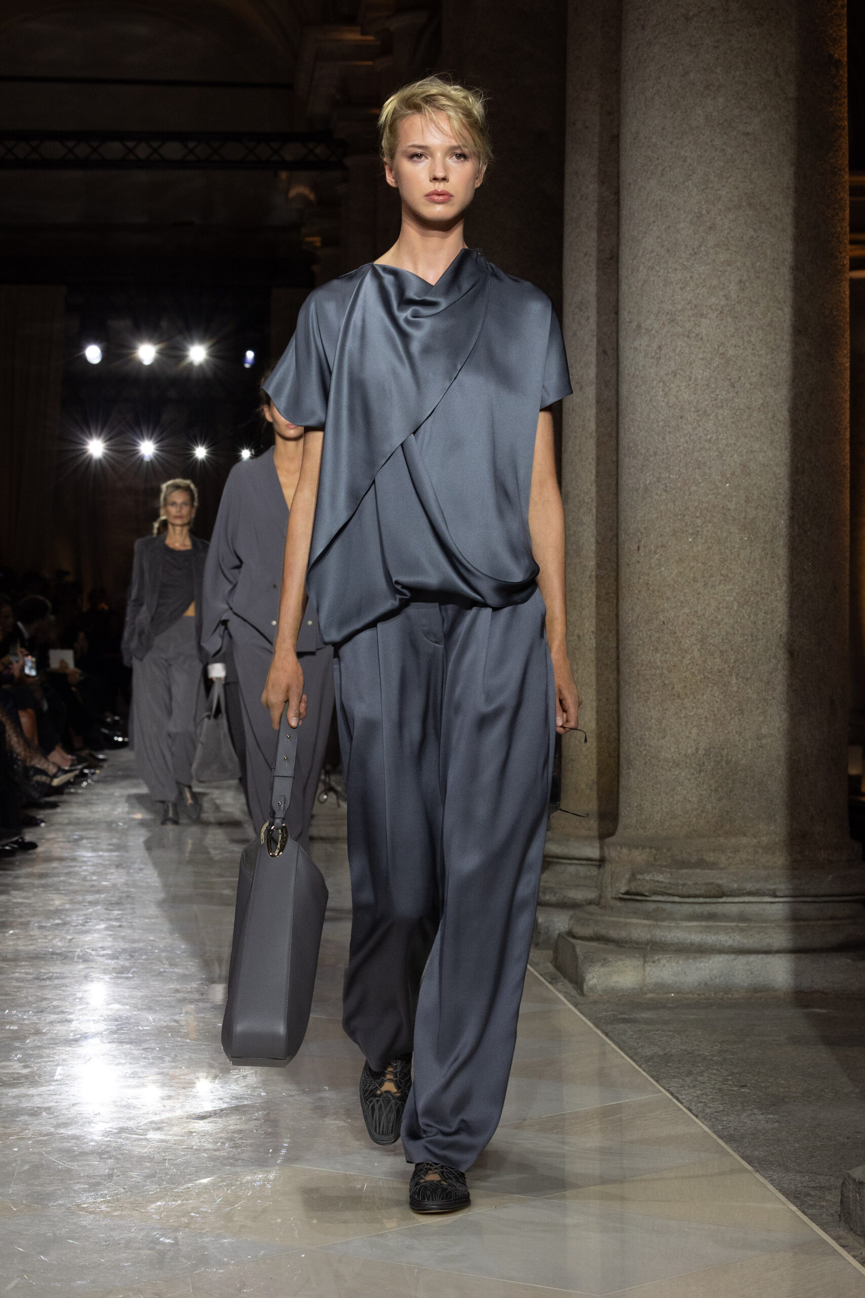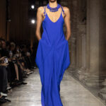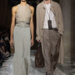 انسابت الأقمشة بخفة وأناقة، مرسومة بخطوط طويلة وقصّات انسيابية تجسّد النقاء والحرية، وروت الألوان قصصًا عن الطبيعة: من الحياديّات العضوية إلى الأزرق الليلي العميق، مرورًا بدرجات نابضة بالحيوية. الفساتين والإطلالات الرسمية بدت وكأنها تتحرك مع نسائم البحر، خفيفة لدرجة تكاد لا تُحسّ، لكنها مفعمة بالقوة العاطفية. إنّها دعوة إلى تذوّق الجمال البسيط، جمال يجعل من خزانة الملابس تجربة وجدانية أكثر منها مجرد اختيار يومي.