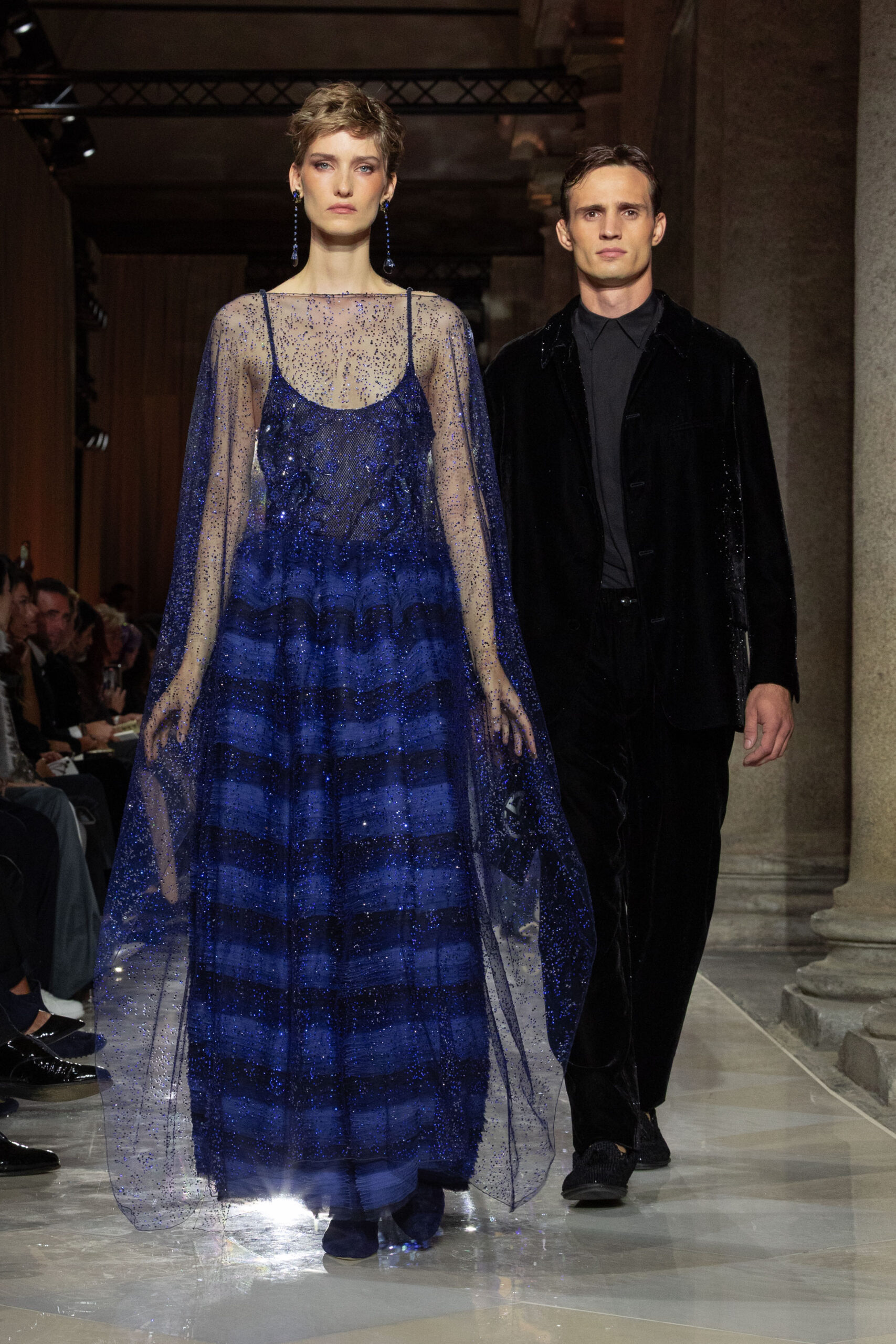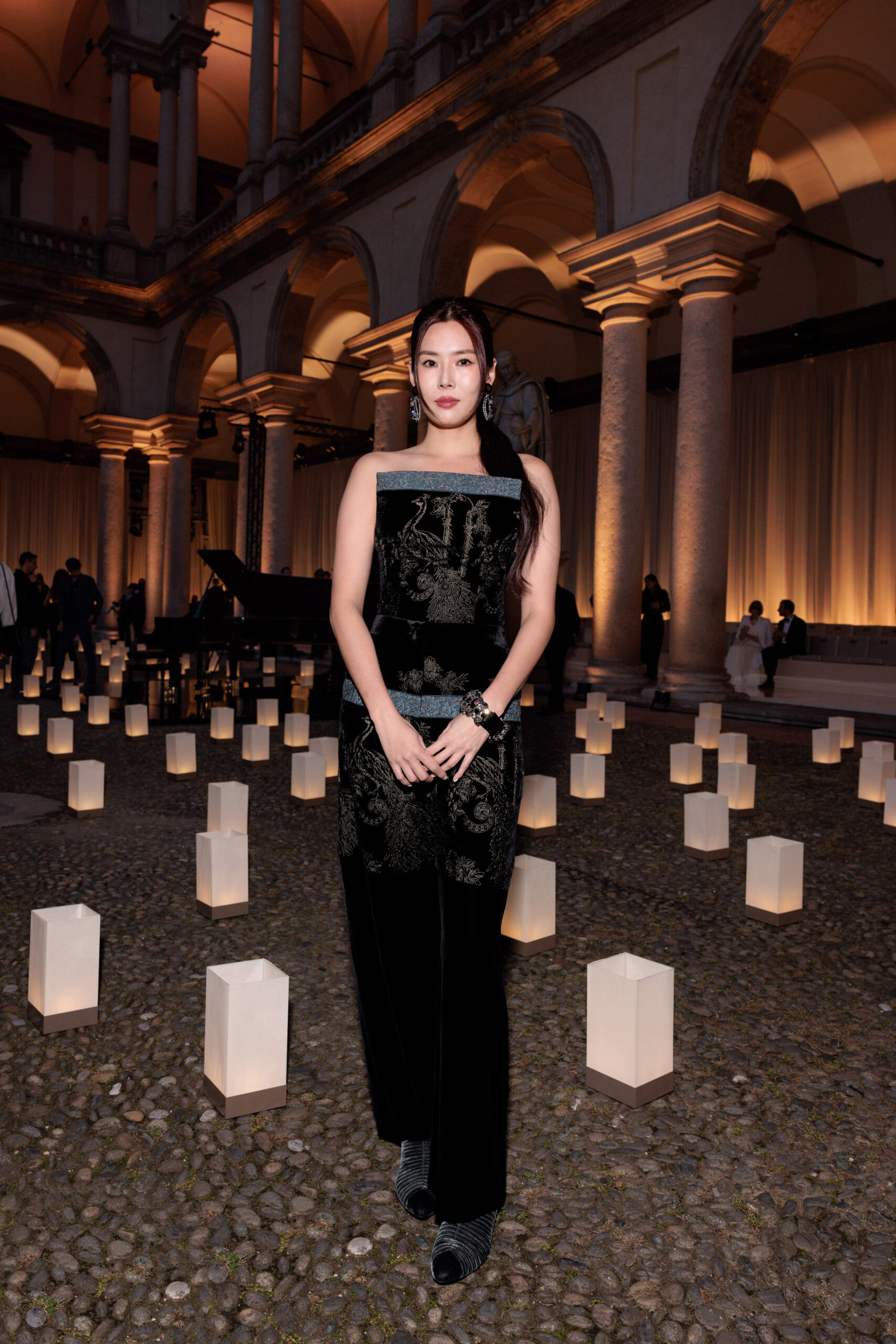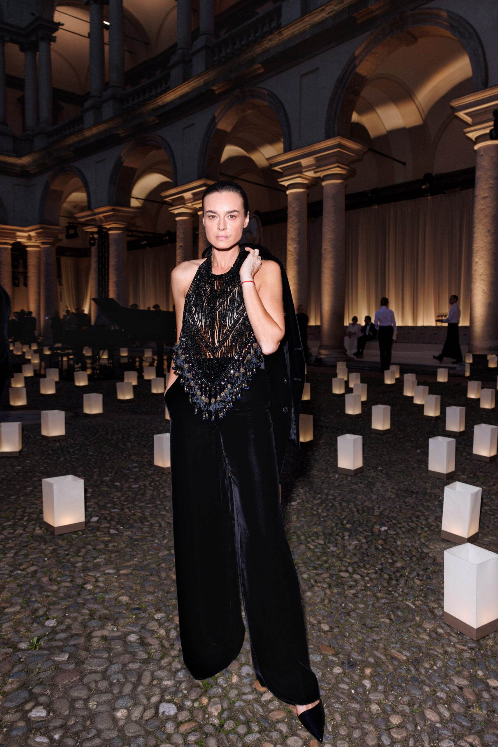 الحدث حضره عدد كبير من نجوم السينما والفن والثقافة من حول العالم، تأكيدًا على البعد الكوني لإرث أرماني. من بين الضيوف: كيت بلانشيت، غلين كلوز، لورين هاتون، ريتشارد غير، صامويل ل. جاكسون، سبايك لي، زانغ زيي، هو غي، لورا ماتاريلا وغيرهم من الشخصيات اللامعة. كما كان هناك حضور من أبرز المصممين وأصدقاء الدار مثل درايس فان نوتن، بول سميث، دين ودان كاتن إلى جانب وجوه الموضة والسينما الإيطالية والعالمية.