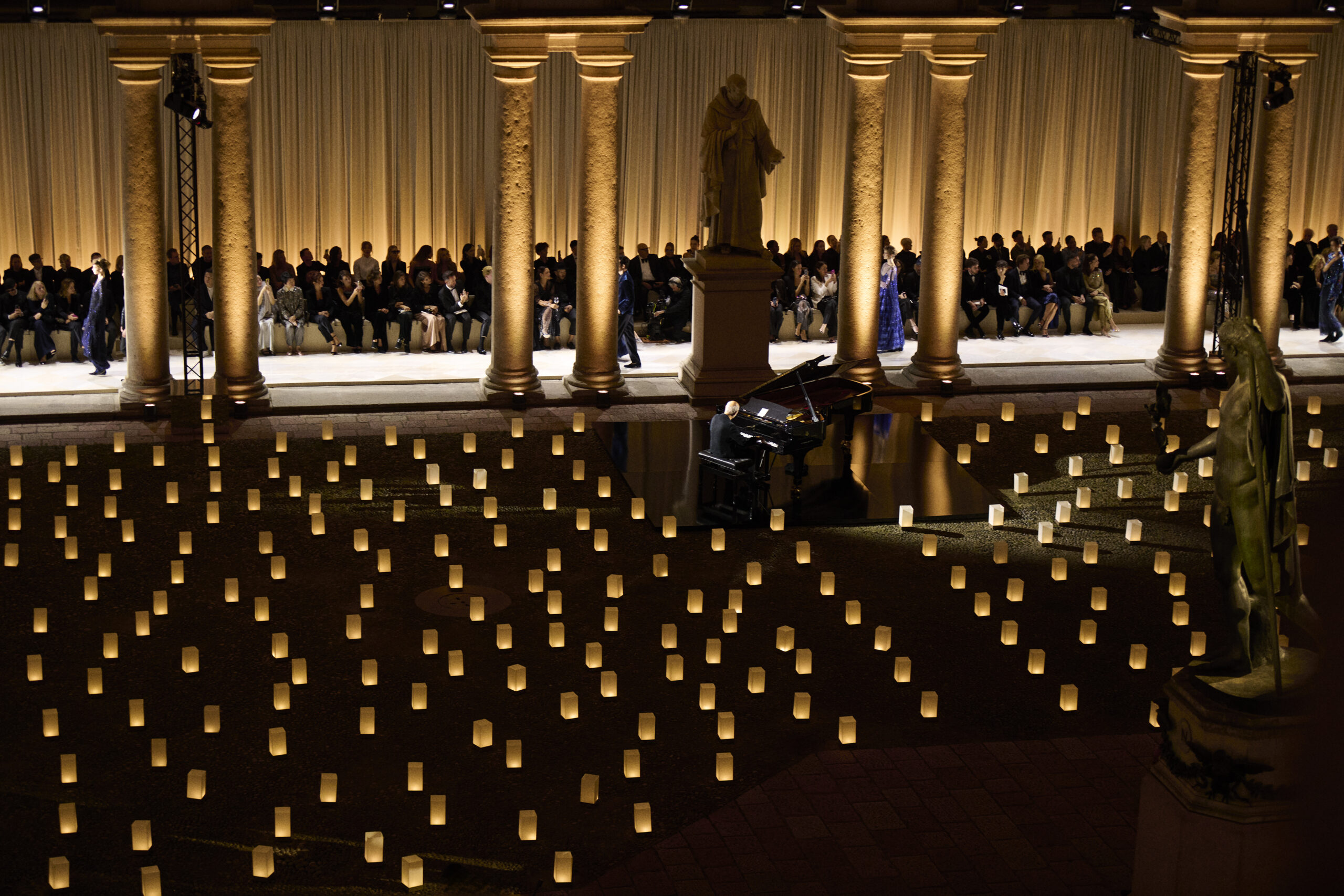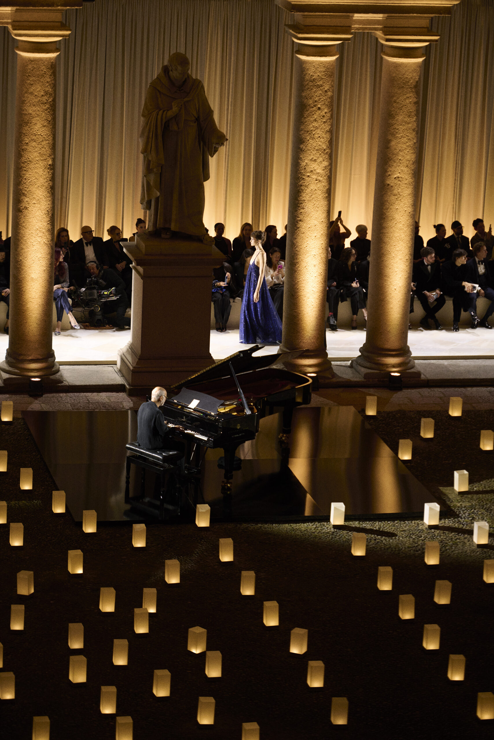 رافق العرض عزف بيانو حيّ للموسيقار لودوفيكو إينودي، ما أضفى على الأمسية طابعًا شاعريًا، وجعل كل خطوة على المنصة بمثابة مزيج بين الموضة والموسيقى والذكريات.