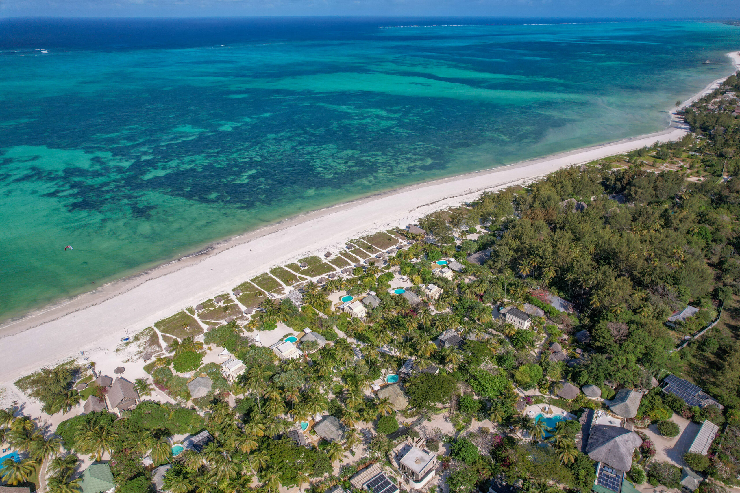 على الشواطئ الحالمة لمنطقة باجي في زنجبار، يسطع منتجع فيلات وسبا وايت ساند كواحة فاخرة تنسجم مع الطبيعة وتتنفّس برهافة مفاهيم الاستدامة. هنا، يتجلّى الجمال في أدق التفاصيل: 18 فيلا واسعة، مزوّدة بمسابح خاصة وأحواض جاكوزي، وخدمة خادم شخصي تُعزّز من شعور الضيوف بالخصوصية والراحة. سواء كنتم ثنائياً يبحث عن الرومانسية، أو عائلة ترغب في عطلة مترفة، أو مجموعة تتشارك لحظات العمر، فإنّ المنتجع يفتح أبوابه لعالم من التجارب الراقية.