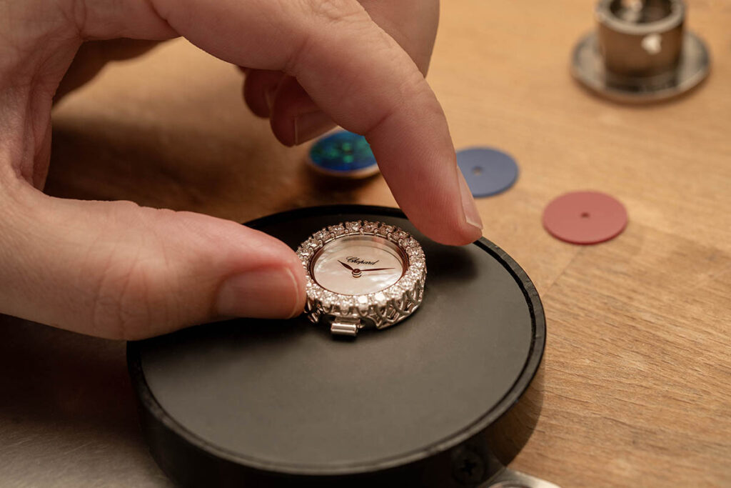 الى جانب تصاميمها المجوهرة اللافتة التي لا تخطئها العين، تتميّز ساعات شوبارد بحركاتها الميكانيكية المبتكرة، ففي قلب هذه الجواهر، تنبض حركات ابتكرتها شوبارد بعناية. في عام 2024، كان إطلاق عيار 10.01-C المخصص لساعة L’Heure du Diamant، بمثابة إنجاز آخر باعتباره أصغر وأنحف آلية حركة مصنوعة ضمن ورشات الدار تطرح في سوق الساعات، حيث يبلغ قطرها 15.70 ملم وسماكتها 2.90 ملم فقط.