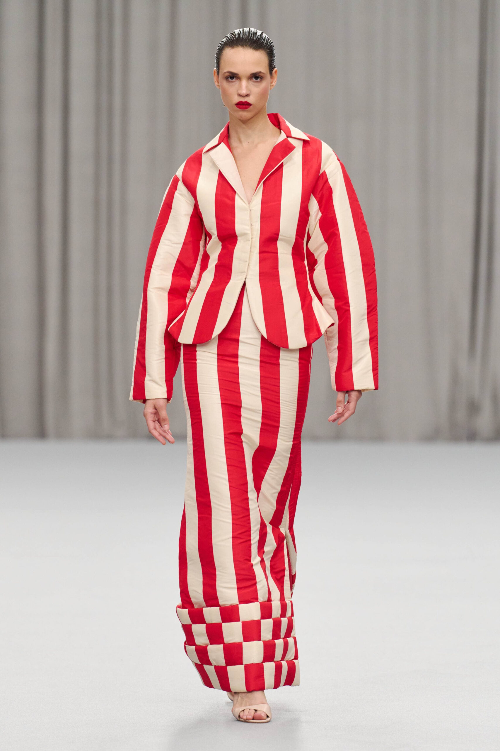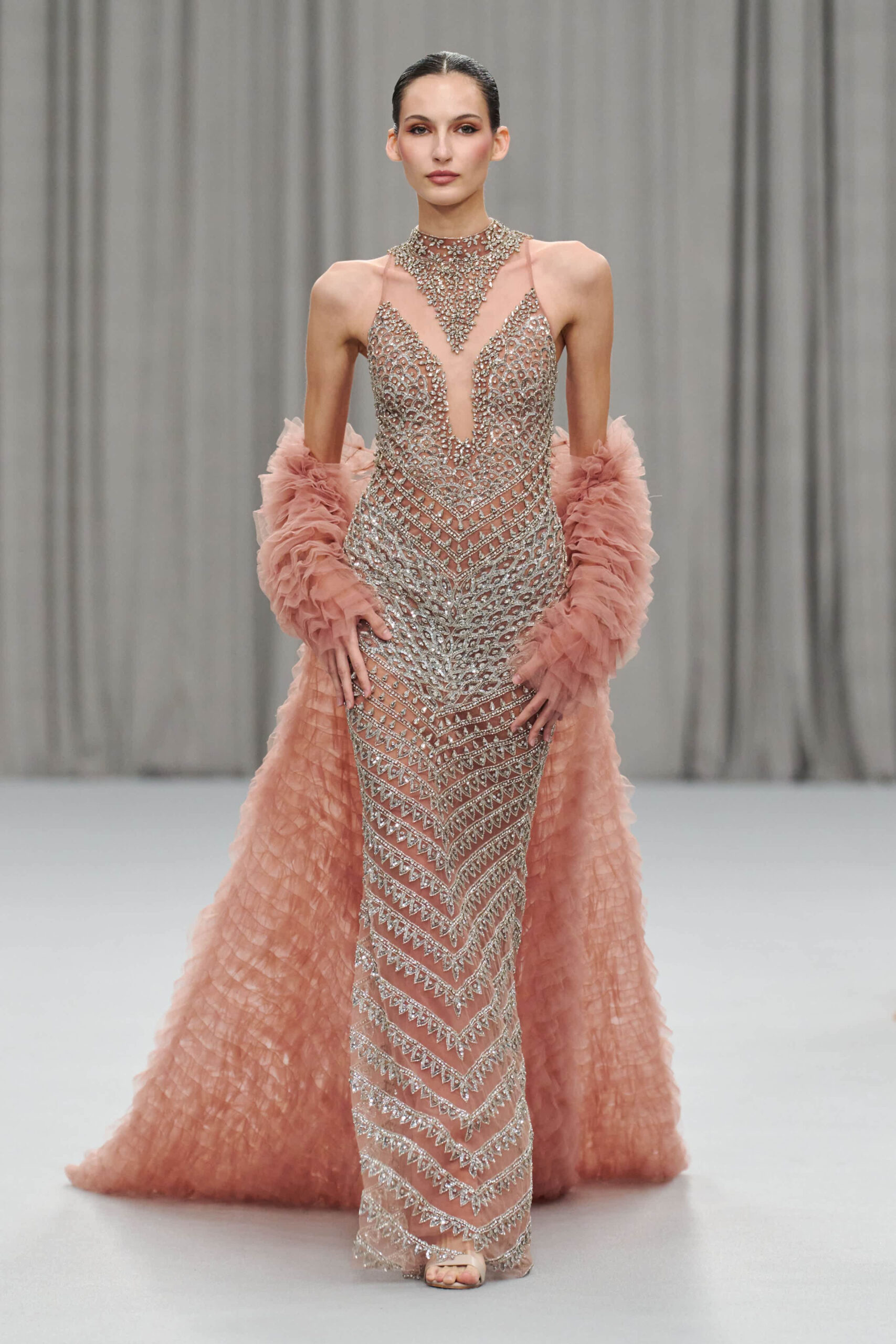 قدمت العلامة التجارية Maison Novague تشكيلتها الراقية بعنوان L’Écriture du Corps (كتابة الجسد)، في عرض لافت جاء كحوار شعري بين الفن والموضة. استعرضت التشكيلة لوحة ألوان أنيقة ضمت العاجي، والذهبي، والأزرق، والقرمزي، وتدرجات بنفسجية تحاكي جمال اللوحات الفنية. تميزت التصاميم بأقمشة حريرية انسيابية، وقصات مصممة بعناية، وتباين مدروس بين النعومة والبنية، في تعبير بصري يجسد أنوثة راقية ودائمة. عكست كل إطلالة فلسفة المؤسسة والمصممة Fariba Pourkhajani، التي تؤمن بأن البساطة تكمن فيها القوة، وأن التصميم هو وسيلة لإبراز الجمال الداخلي والجرأة الهادئة.