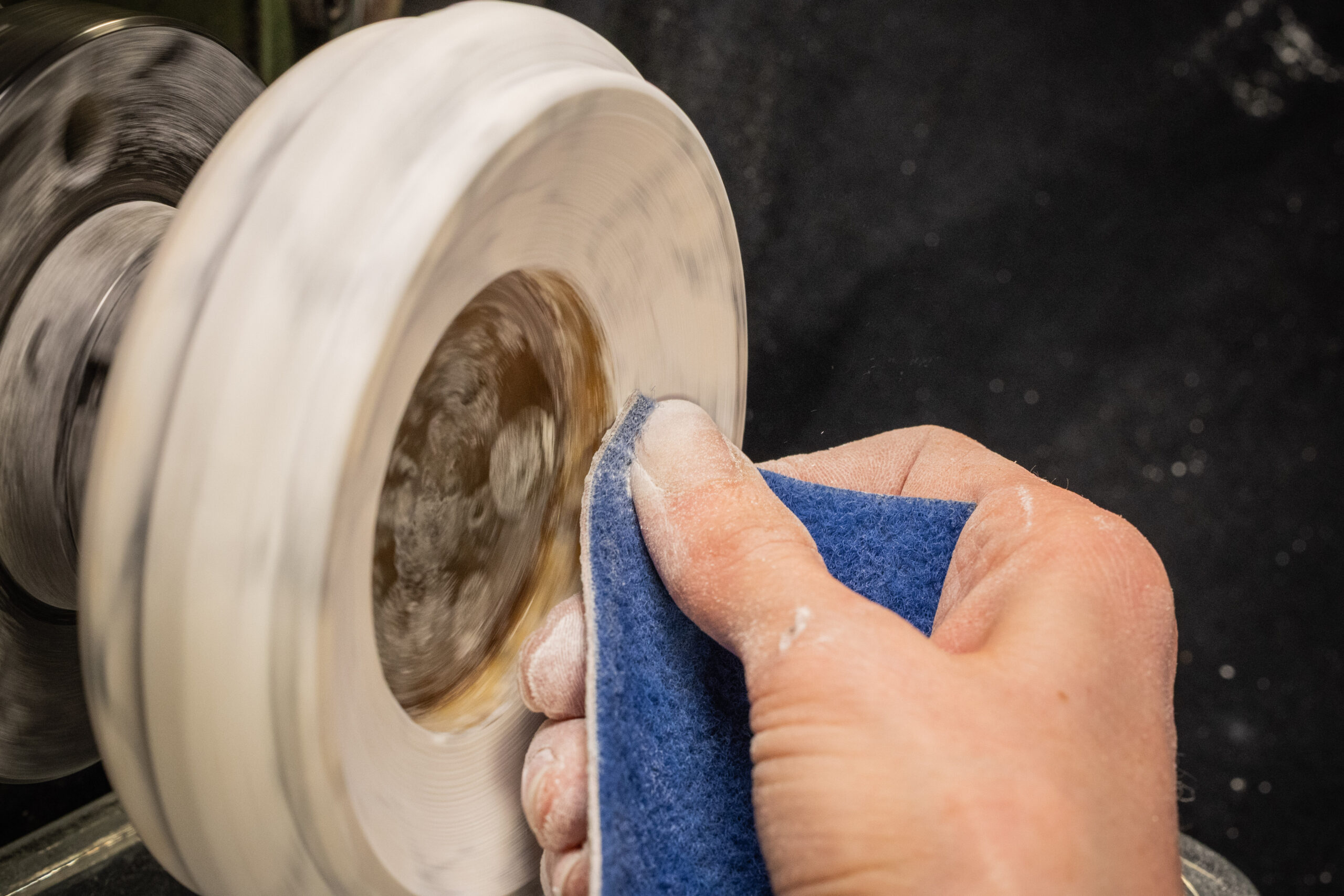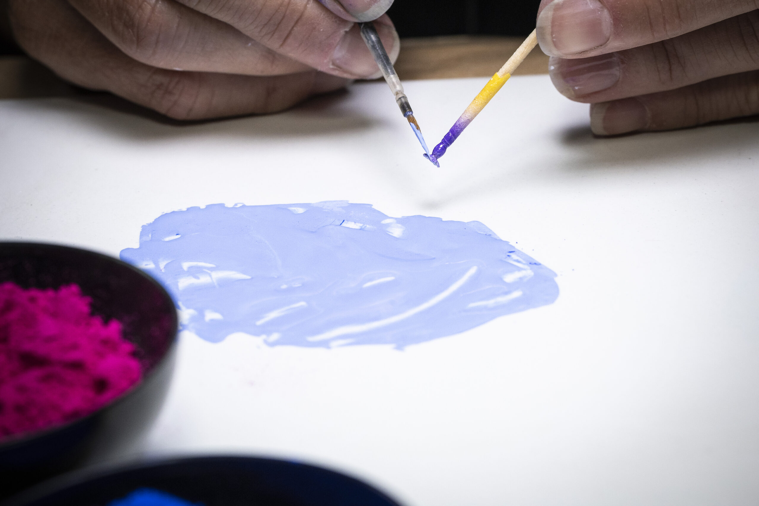فن الطلاء باللكر اللاكيه: تُشكّل أغصان الخزامي يدويًا بالكامل قبل أن تُطلى باللكر باستخدام المرذاذ الهوائي. تتطلب هذه البراعة العمل على عدة مراحل، بدءًا من خلط الأصباغ، مرورًا بتطبيق المادة على السطح، وصقل الطبقات المختلفة، قبل القيام بتلميعها في نهاية المطاف. وفي خطوة أخيرة، يُطبق طلاء نهائي لامع وشفاف ليُضفي لمسة من البريق على الإبداع بأكمله.