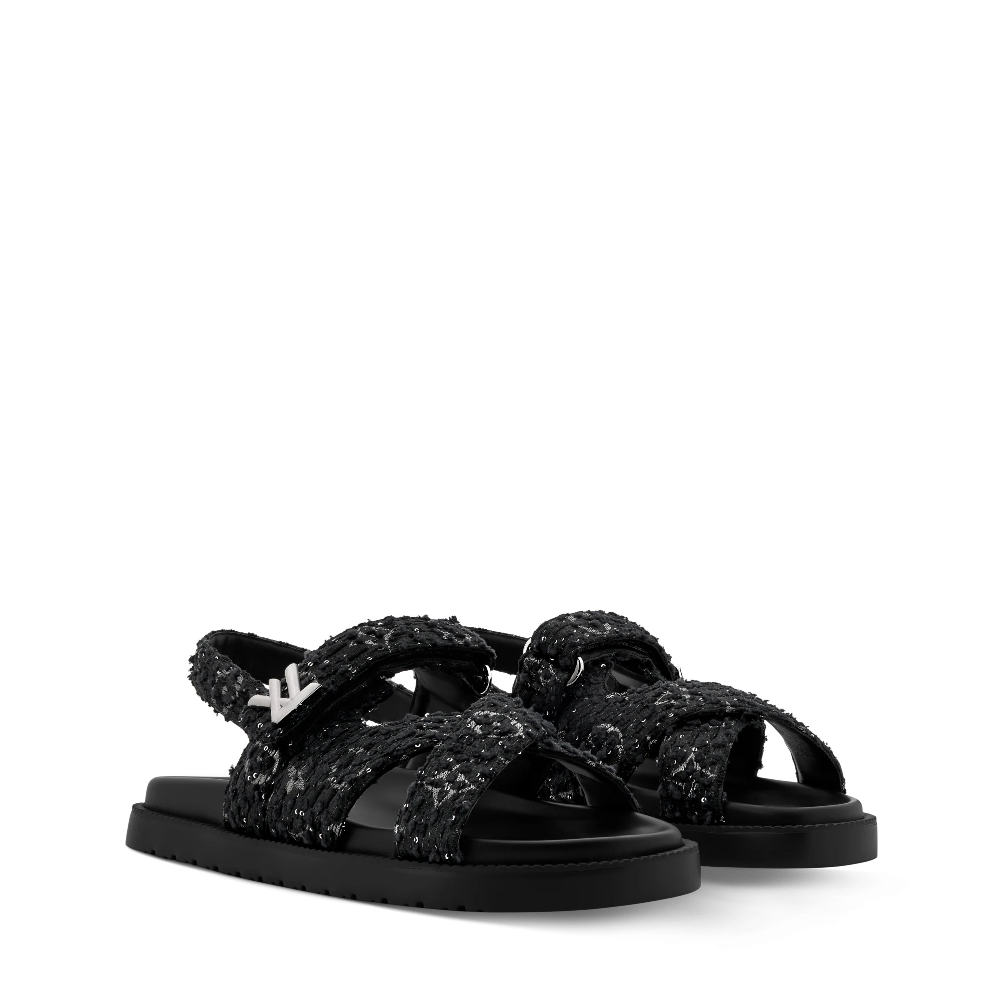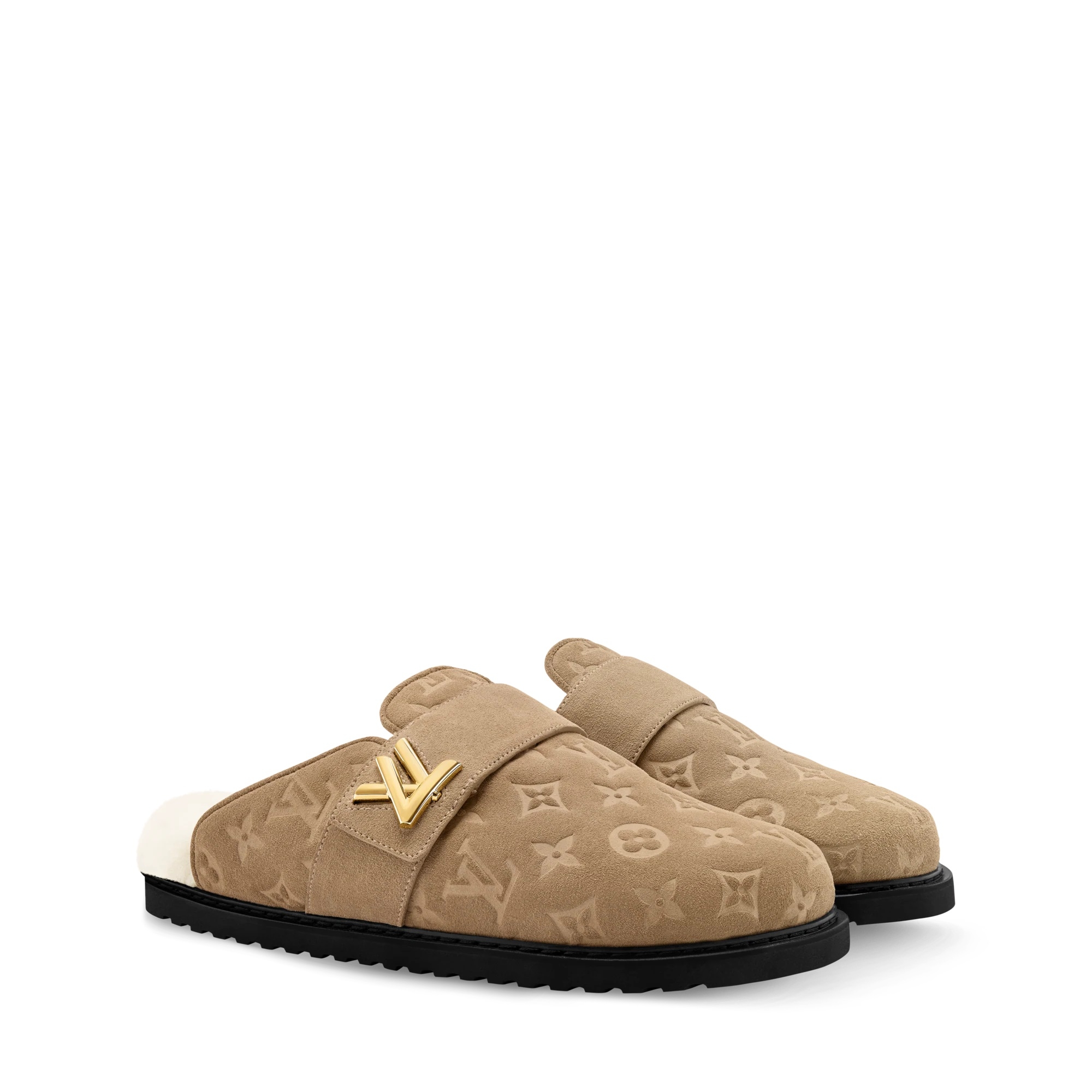 أما الأحذية، فتقدم المجموعة خيارات متنوعة لأوقات اليوم المختلفة، بما في ذلك أحذية Cortina الكاحل والصنادل المصنوعة من جلد الغزال أو المزينة بفرو الشيرلينغ، والتي تتميز بنعل سميك مزين بأزهار المونوغرام، مثالية لإطلالات أنيقة ومريحة. وتستعير أحذية LV Cloud ، نفس الزخارف المستخدمة على السترات المصنوعة من النايلون والتفتا، لتقدم جمالية رياضية عصرية.