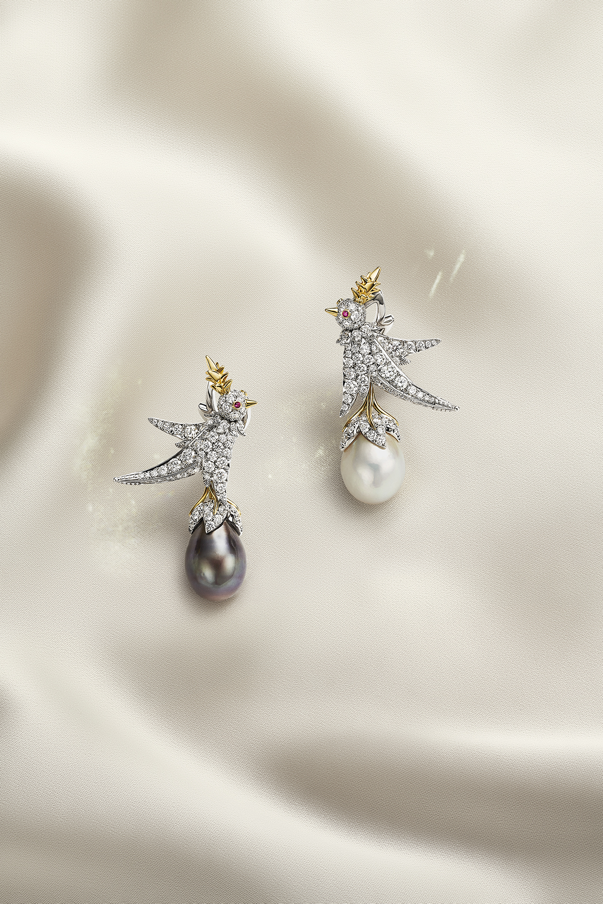 تحتفـي مجموعة «بيرد أون أ بيرل» المميّزة بجمال اللآلئ الطبيعية المستخرجة من المياه المالحة بطرق مبتكرة وغير تقليدية. تتجلّى فـي بعض التصاميم صور الطائر وهو يستقر فوق لآلئ الباروك أو اللآلئ المتدلية، ما يبتكر تواصلاً سلسًا بين عالم الطبيعة وعالم الفخامة الاستثنائية. فـي تصاميم أخرى، تتداخل اللآلئ والطائر بطريقة فريدة، حيث تشكّل اللآلئ رأس الطائر أو جسمه، ما يعكس اندماجًا مبهرًا بين الأناقة العضوية والإبداع الجريء .تتدرّج ألوان اللآلئ وأشكالها المتنوّعة لتعكس انتقالات الفصول الطبيعية، بدءًا من الضوء الرقيق للربيع، إلى دفء الصيف، وصولاً إلى ألوان الخريف الناعمة.
