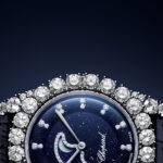 في ساعة L’Heure du Diamant Moonphase، تمزج شوبارد بين الشعر والفن والدقة التقنية في تحفة تجسّد قمّة التطور في صناعة الساعات النسائية. فبآلية حركة Chopard C-09.02 الجديدة الذاتية التعبئة، يتتبع عرض أطوار القمر مساره الفلكي بدقّة فلكية مذهلة لا تحتاج إلى تعديل إلا بعد مرور 122 عاماً. أما المينا المصنوع من زجاج الأفينتورين الأزرق فيحاكي بريق السماء المرصّعة بالنجوم، بينما يحيط به إطار من الألماس المرصّع وفق تقنية الترصيع التاجي الحصرية التي تسمح لأشعة الضوء بالانسياب بحرية عبر الأحجار، مضاعفةً من تألقها الأخّاذ.