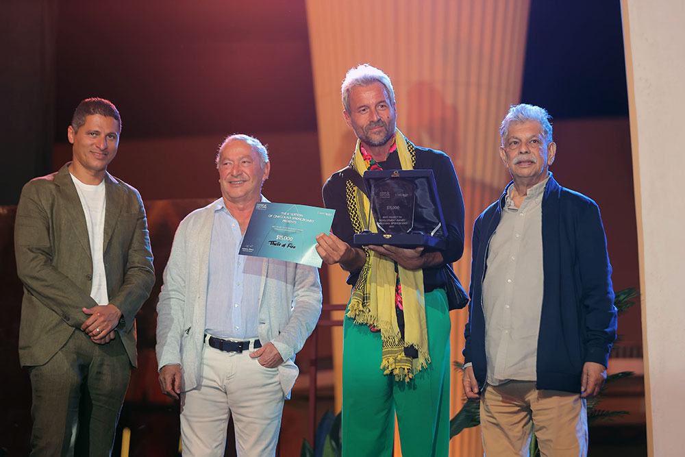 هذا وجاءت البداية بمنح شهادة المنصة وجائزة مالية قدرها 15 ألف دولار، لأحسن مشروع في مرحلة التطوير لفيلم “سرقة النار” من إخراج عامر الشوملي، وهو فيلم فلسطيني كندي فرنسي، وحصل نفس الفيلم أيضا على 10 آلاف دولا أمريكي.