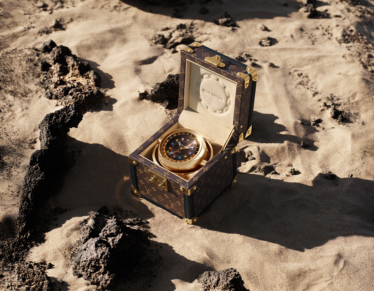 هذا وتقدّم لويس فويتون ساعة لتزيين الطاولة في حقيبة سفر، وهي تمثل ابتكاراً استثنائياً يتألف من ساعة بتصميم راقٍ تستقر داخل حقيبة سفر من القماش المزدان بشعار العلامة التجارية – في تصميم يجسّد سمات لويس فويتون المميّزة ويمزج بين الأناقة التقليدية والأداء العملي بلمسة عصرية.