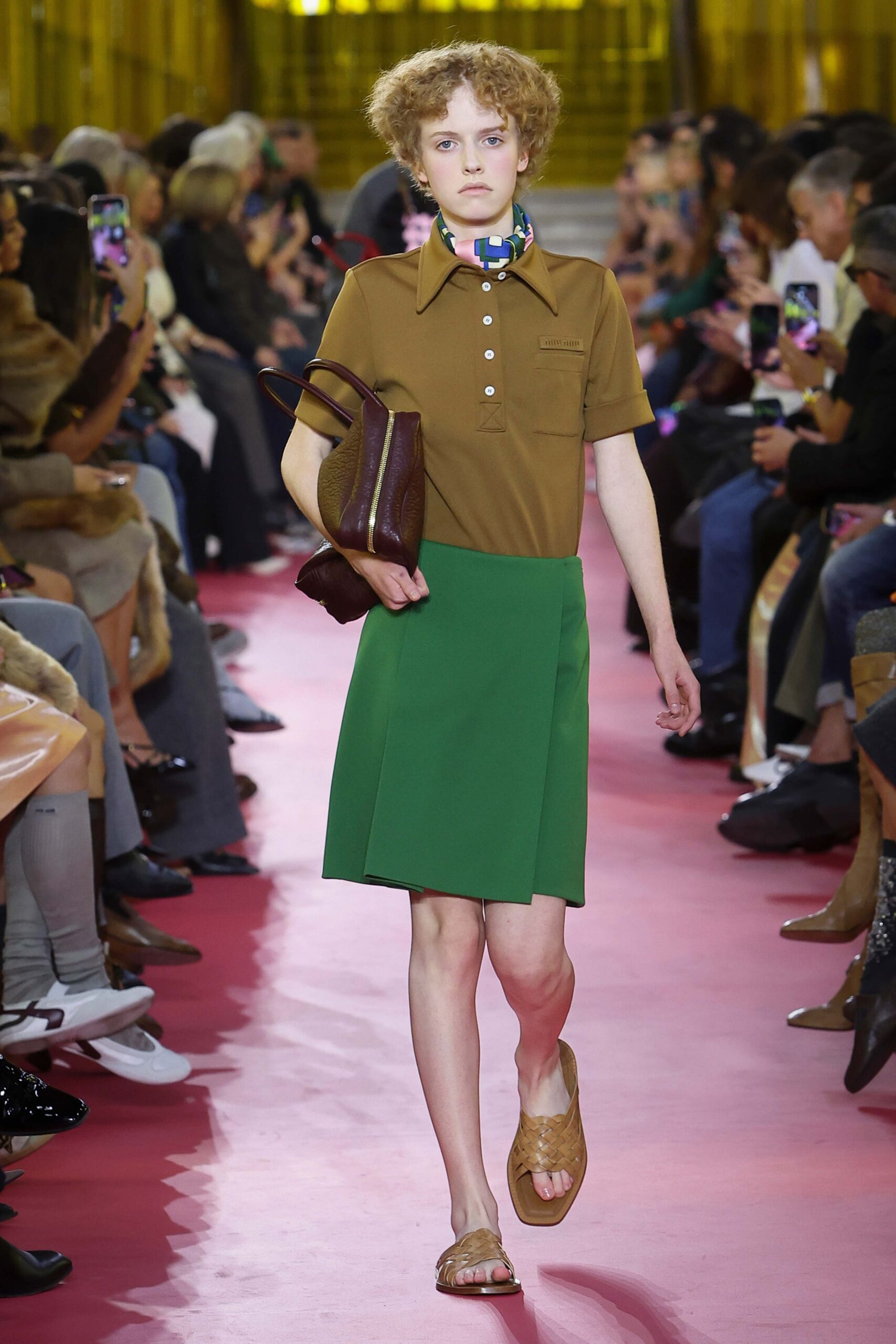تُترجم Miu Miu هذه الرؤية في تفاصيلها الدقيقة: الأحذية والحقائب تتخذ طابعًا صناعيًا متينًا، تعكس فكرة الجمال النابع من المتانة والوظيفة. أما الكشاكش، أحد أكثر الرموز أنوثة، فتظهر هنا بأسلوب جديد -رمز للصلابة كما للحنان.